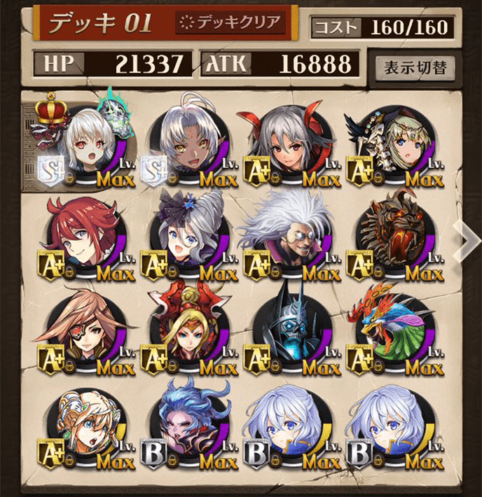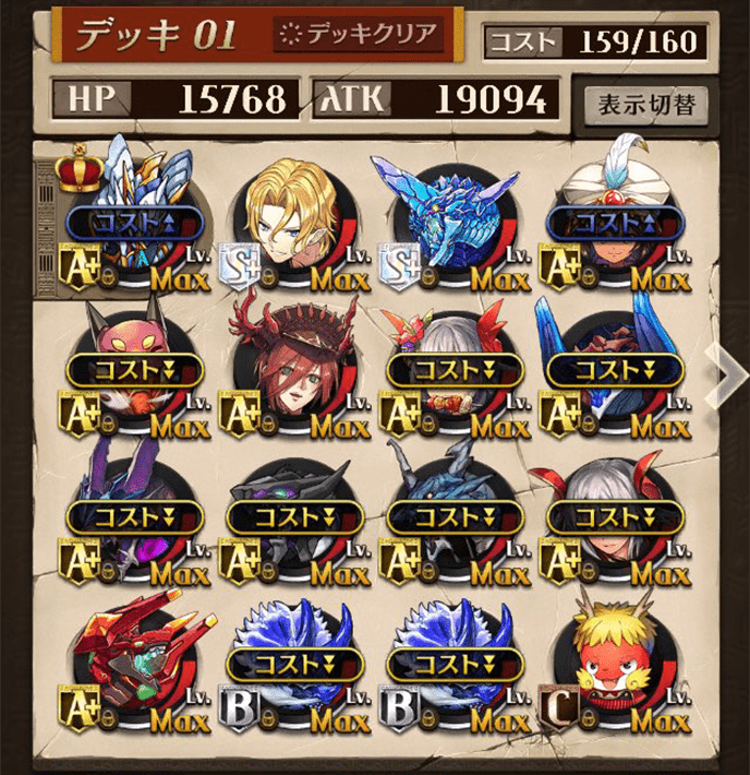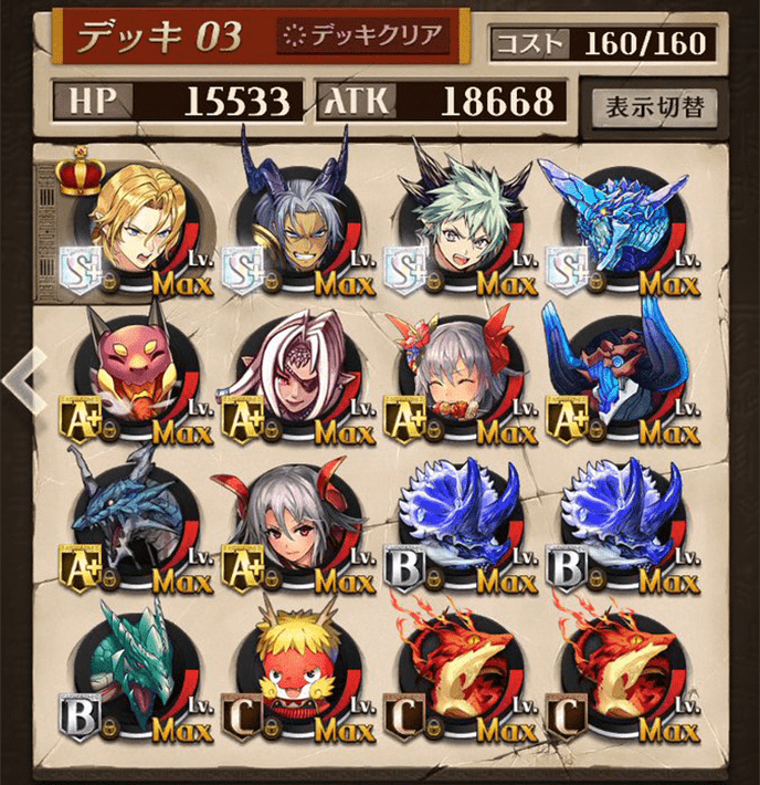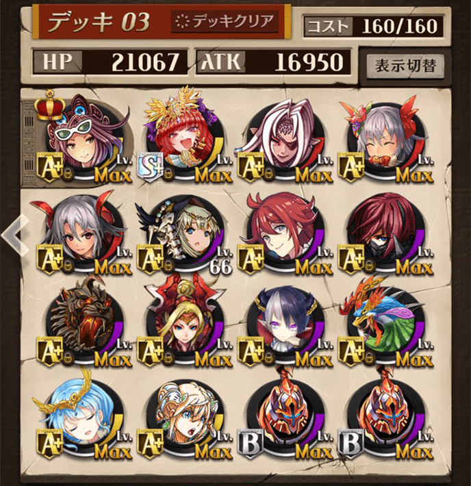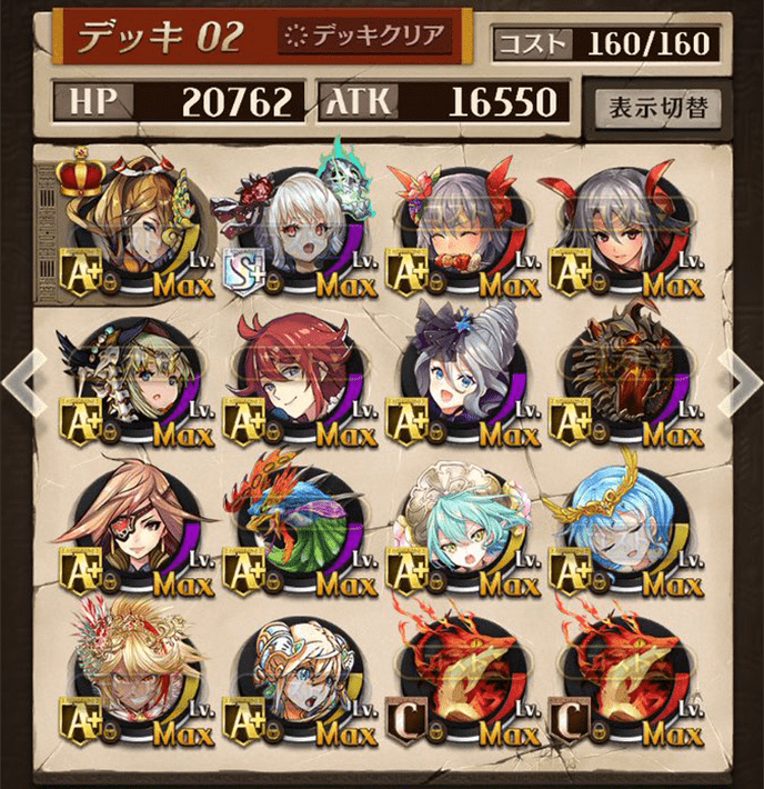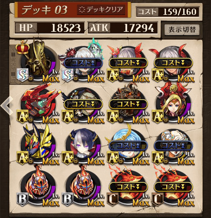 あずにゃんが来ることをひたすら祈るデッキ、比較的魔が多めの編成で、アルンやグエリアスとは違って一枚でもスキルが発動するためアタッカー枠にマスティマを採用!一枚しか返せない盤面でも腐らなくて役に立ちました!