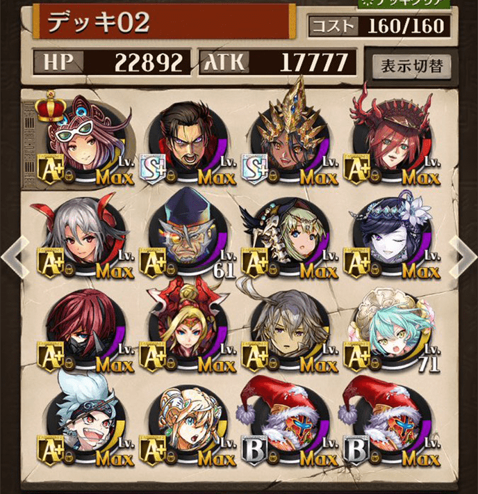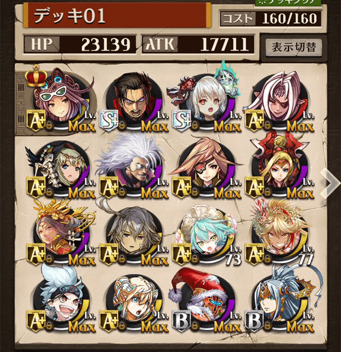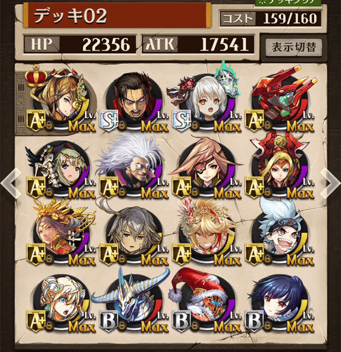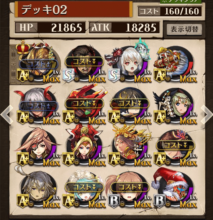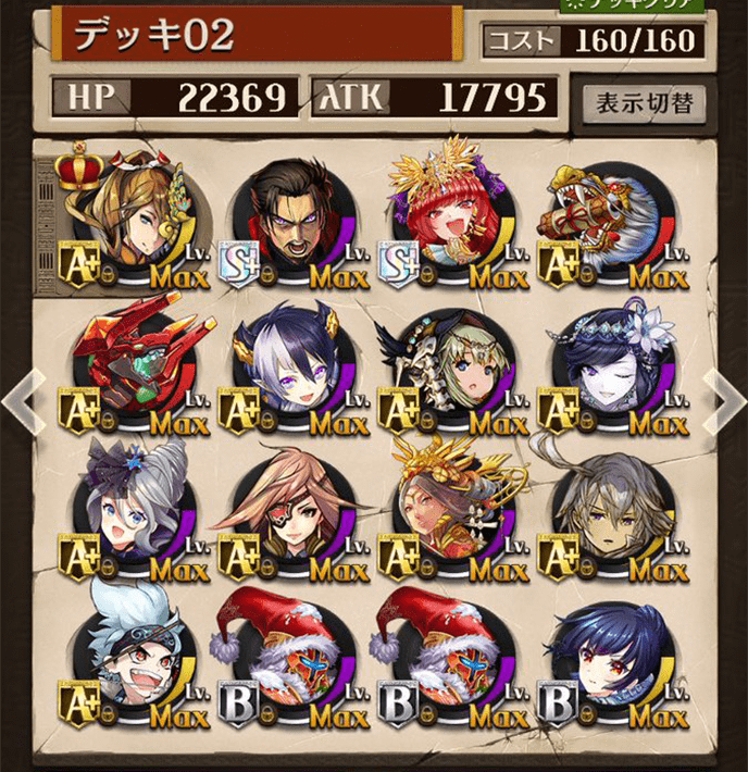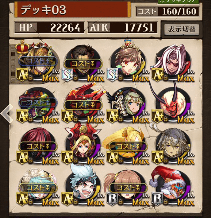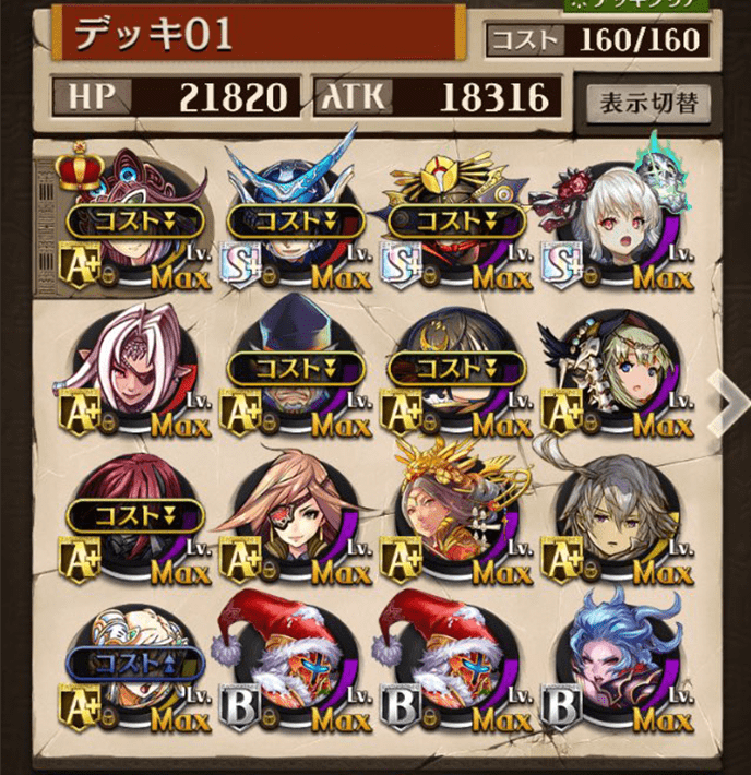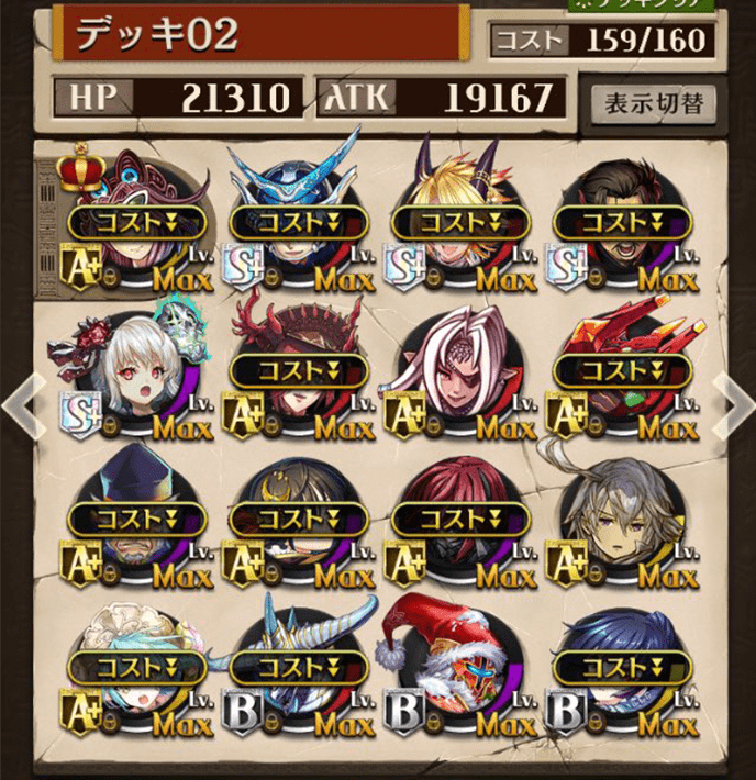 最初は右のデッキを使っていましたが上位プレイヤーがヴァイセを編成しているのを見て左のデッキに変更しました。勝率は6割〜7割程度でした。