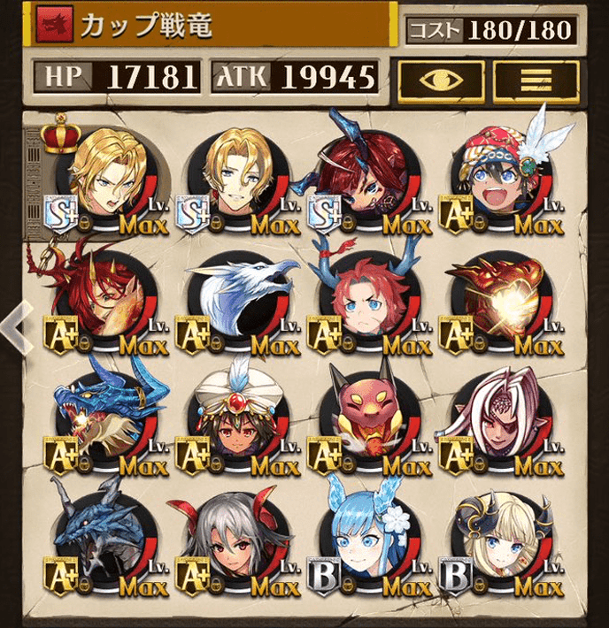 久しぶりのカリスマ復帰部活などで、2000くらい取れる順位を落としてしまいました。毎日寝落ちしてしまいこの順位には、納得いってません。ダウス、ベルーガ、アンメダがいないのでマクスなどで、A竜とのコンボを狙って勝つと言うデッキです。