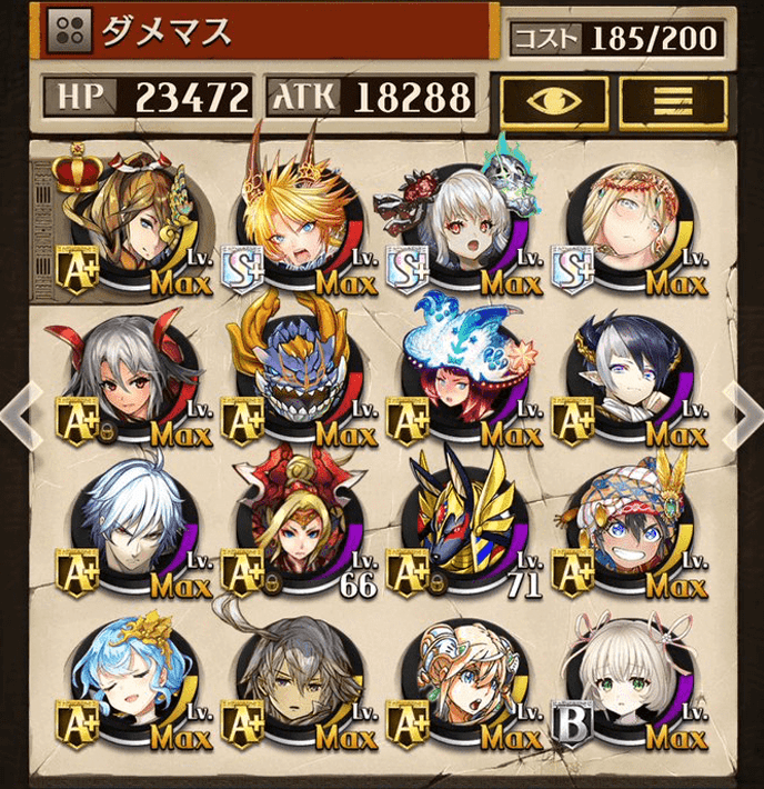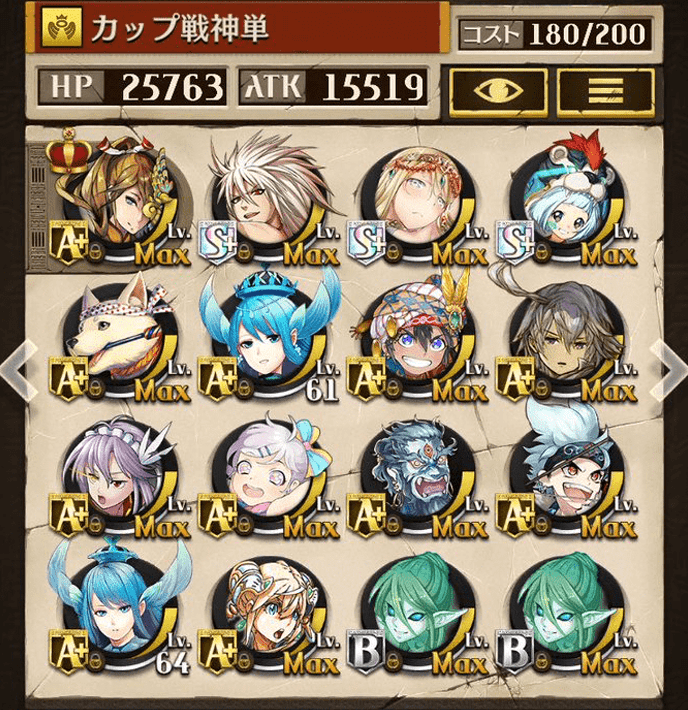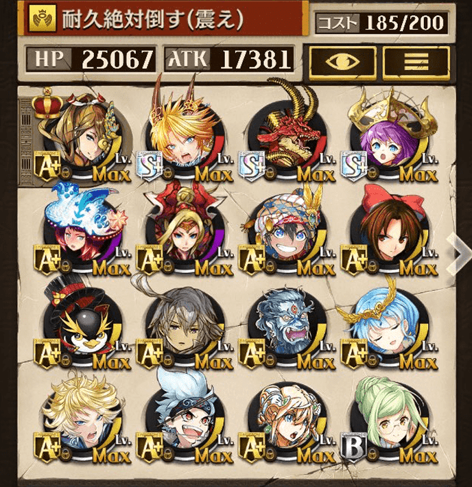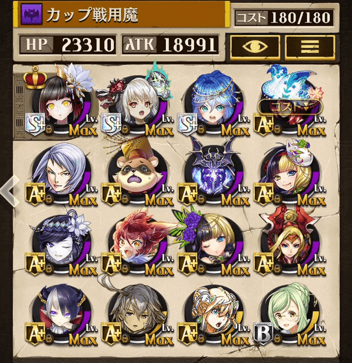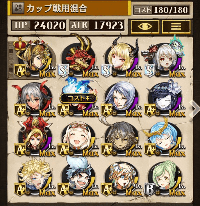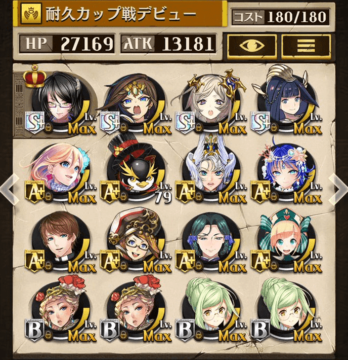 金フギムニちゃんやフェリプティちゃん等のバフで攻撃力を底上げし、ヴィクトリアさんやエンデガさんでフィニッシュー! って感じでやってました笑 初のカップ戦フル参戦でドキドキしました。最後らへんは連敗でしたがとても楽しかったです!☺️