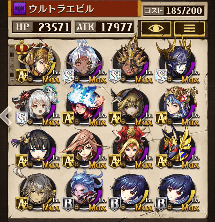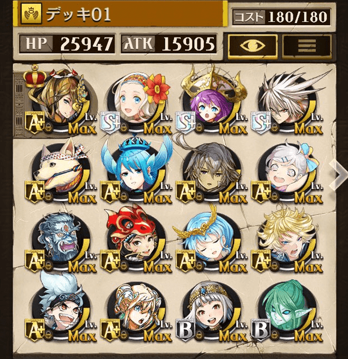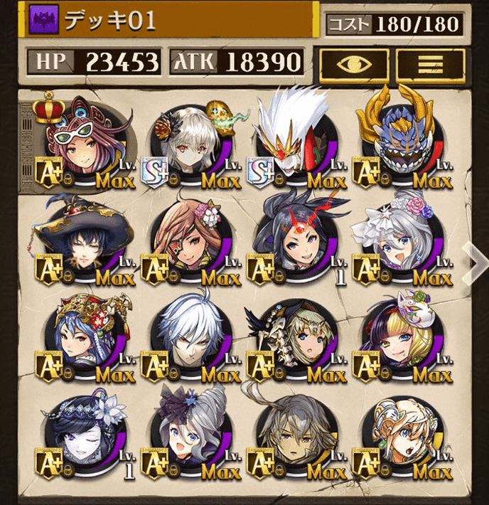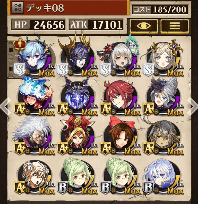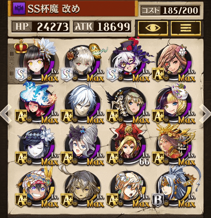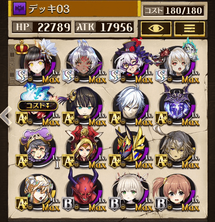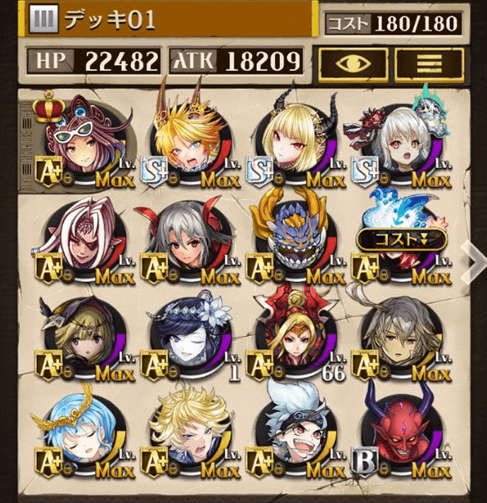 1日目は時間がなかったので竜でやりましたが2日目以降は呪っていきました。初めはクローマを抜いたS3枚でしたが、呪い不足を感じたのでs4枚編成にしたところ中々安定するようになりました。蘭陵王が多かった今回は特に呪いは強く感じました。