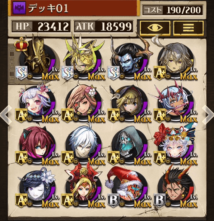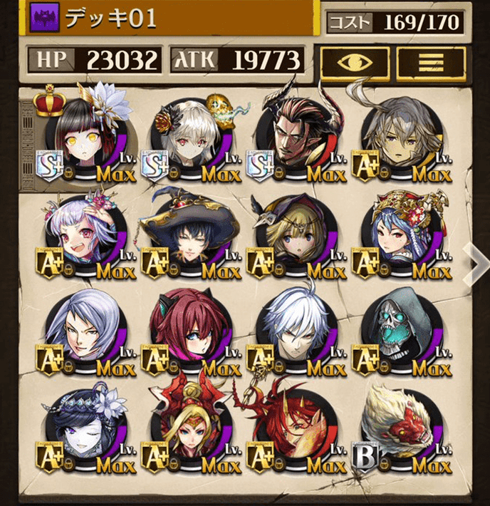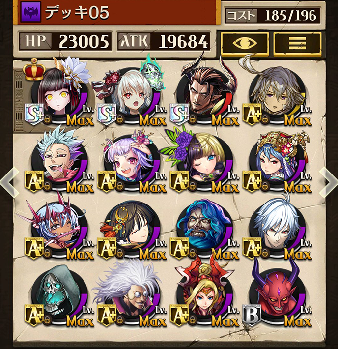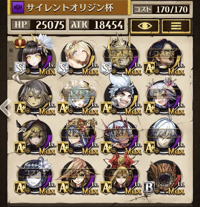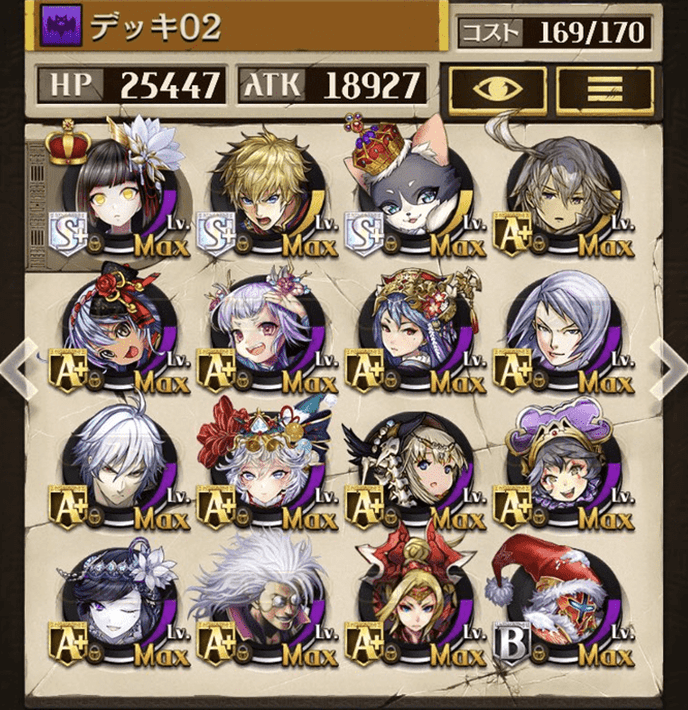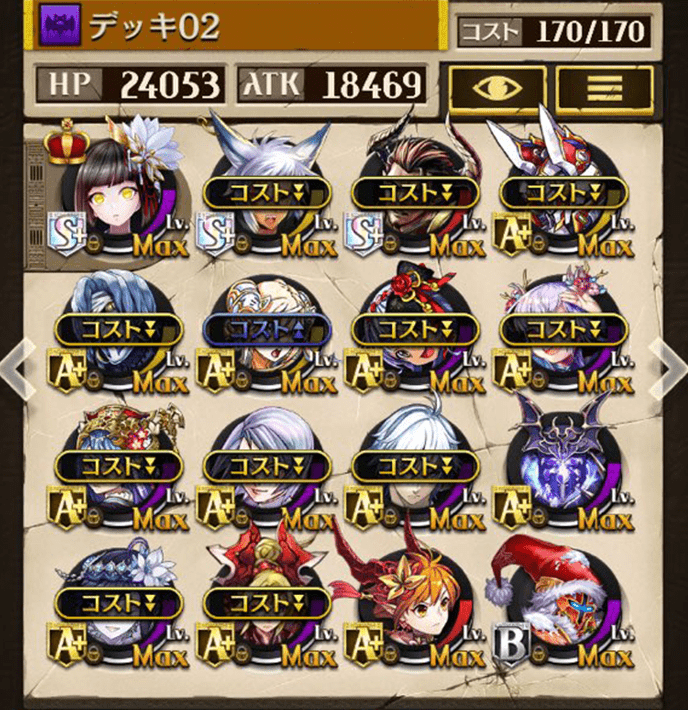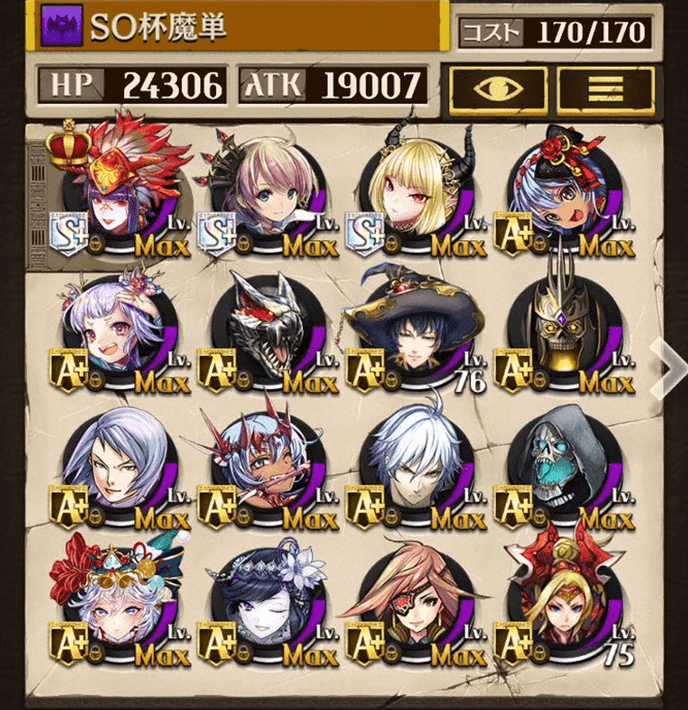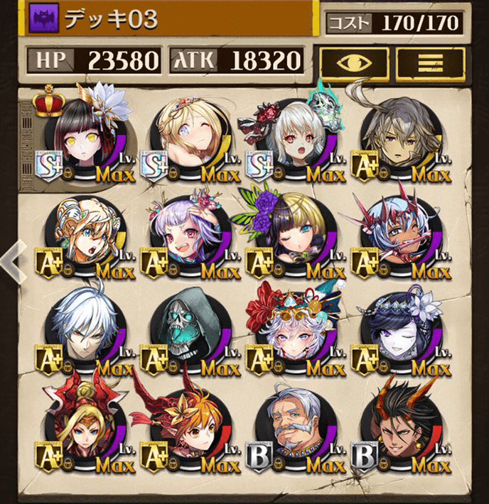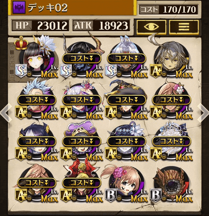 初日は、毒と罠を警戒していたので対策駒を投入。最終日は、呪い、デバフが目立ったので駒投げをし易くした。ごり押しができ巻き返し完了。早く闘化ブランジェッタをカップ戦で使いたいw