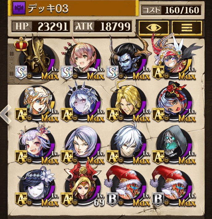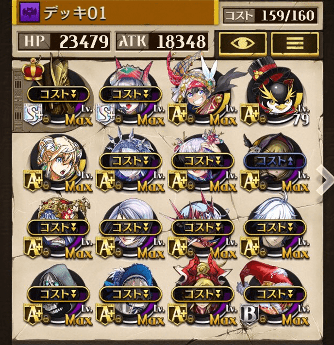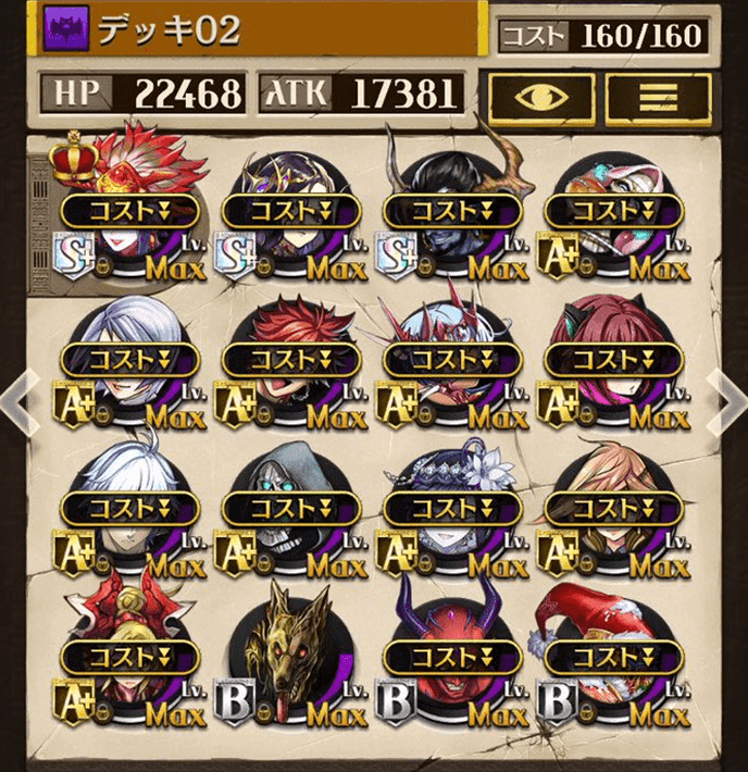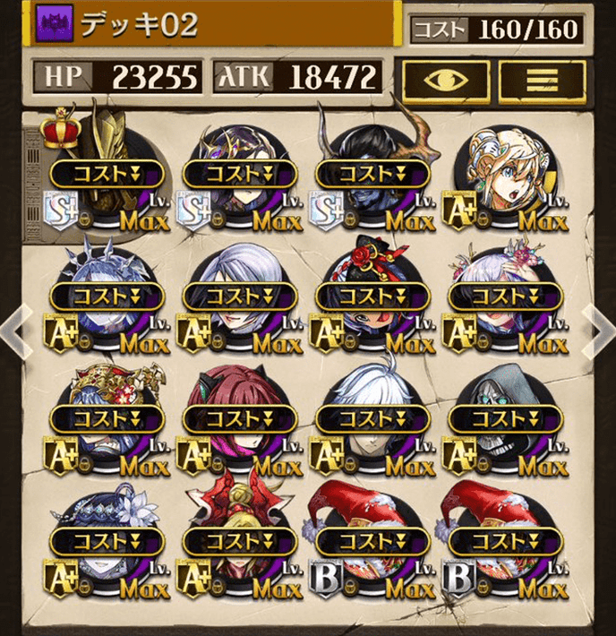 今回はコスト160ということで全体的にHPが低いのでHP重視で行きました。S3枚+風花が全部使えれば、実質HPは34000。しかも、妖猫のコンボも使えればさらに上がるというロマン溢れるデッキです(笑)