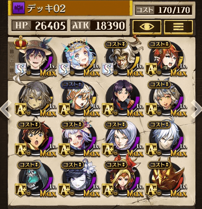 MVPはオルプネーです。2000吸収と魔駒多めのデッキなのでコンボスキルが生かせました!ルキア下が8枚なのでオーラが釣られることはほぼなかったです。