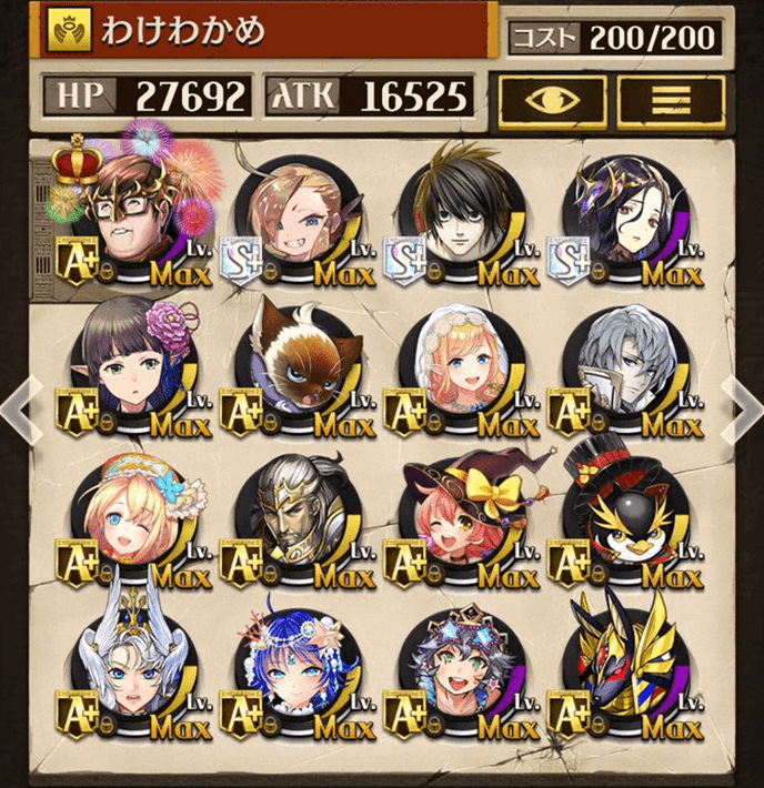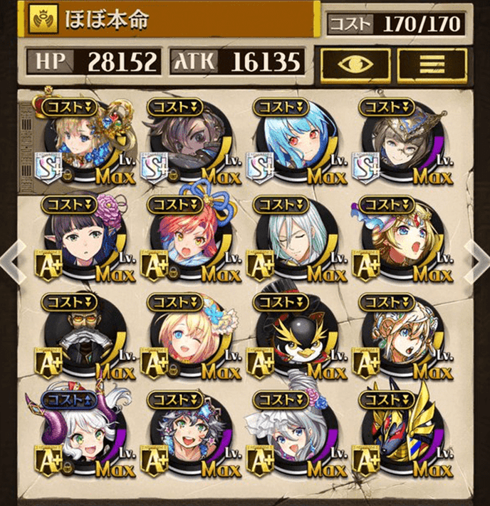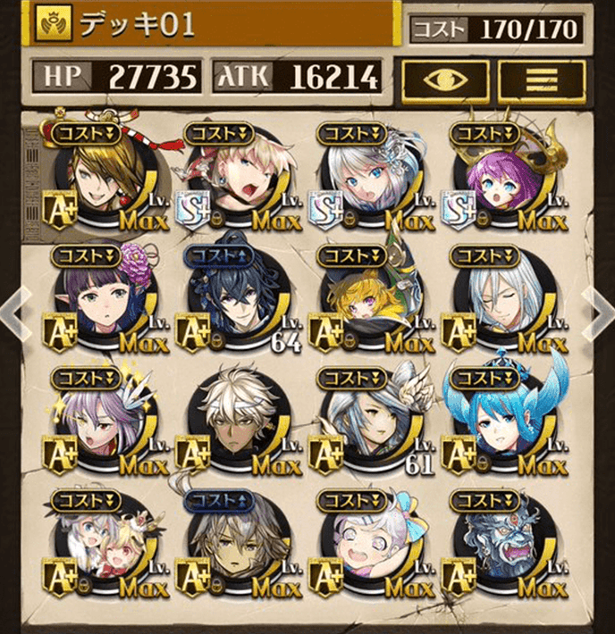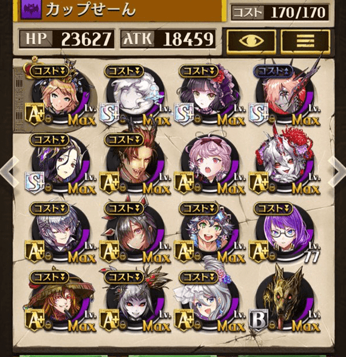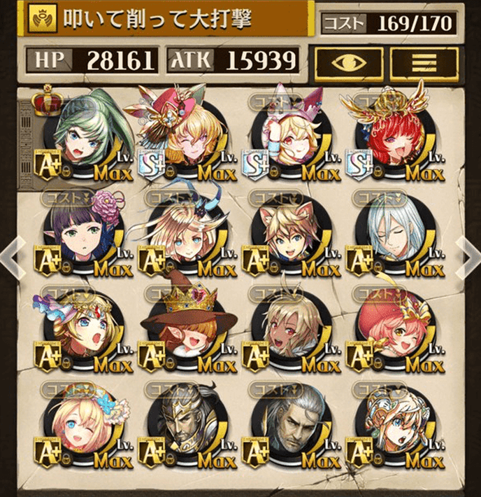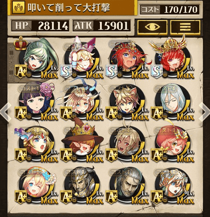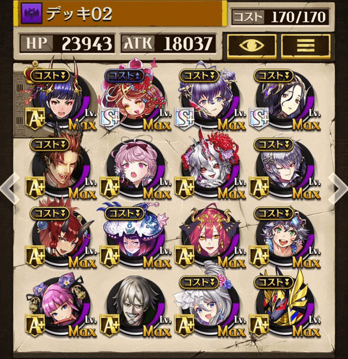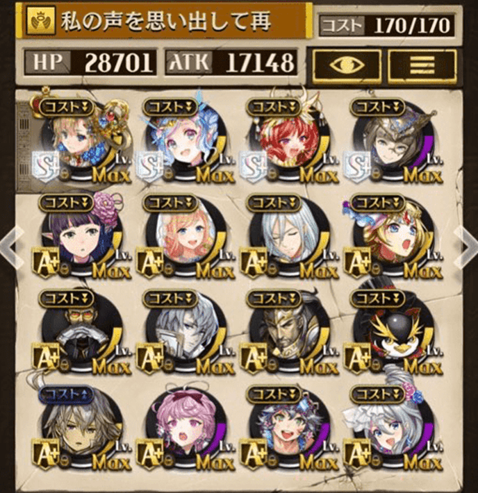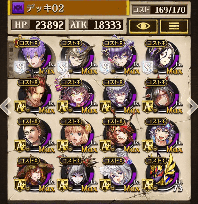 アタッカー少なめのバフ召喚です、 囁き対面もバフで吹き飛ばしました