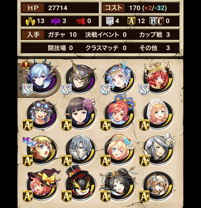 進化ヴィナが居ないので、囁きで周りました。最初に10連出来たのがデカかったですね。9戦未消化ではまあまあかなとは思います。耐久系が多い時は、疲れますね🤔