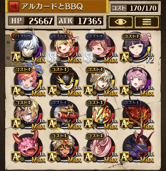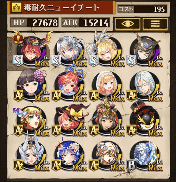 今回は毒耐久で挑みました。ニューイ&シエンティアコンビが強すぎてMVPです囁き 代償 神単 等が多く見られたので、特殊カットのアラーチェ アウロラ2枚積んで特殊を大幅カット!からの耐えて毒で倒す そんなイメージで戦いました初の3000Pt♪\( ´˘`)/