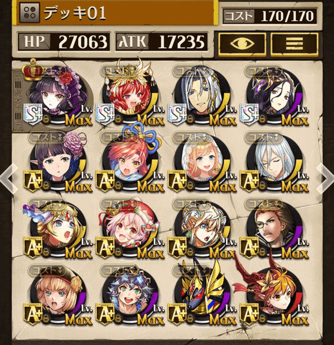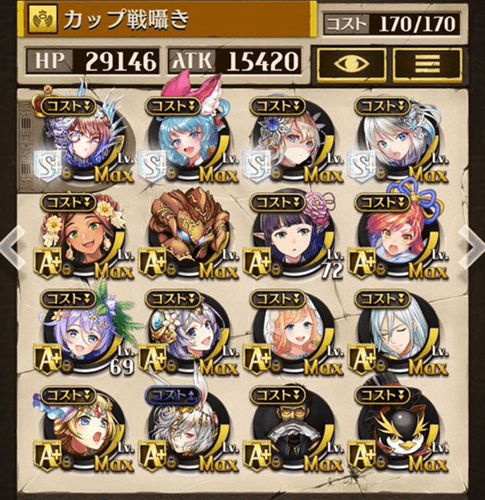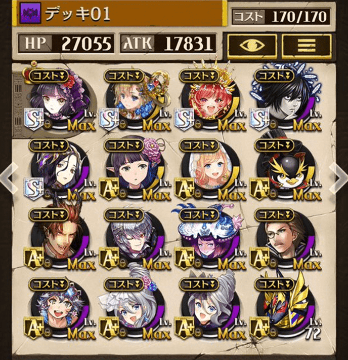 基本的な囁き駒に冒険モルジアナを入れた変則デッキでやってみました。時間の関係で15戦近く出来なかったのにこの順位を取れたのは素直に嬉しいです!MVPはもちろんモルジアナちゃん!