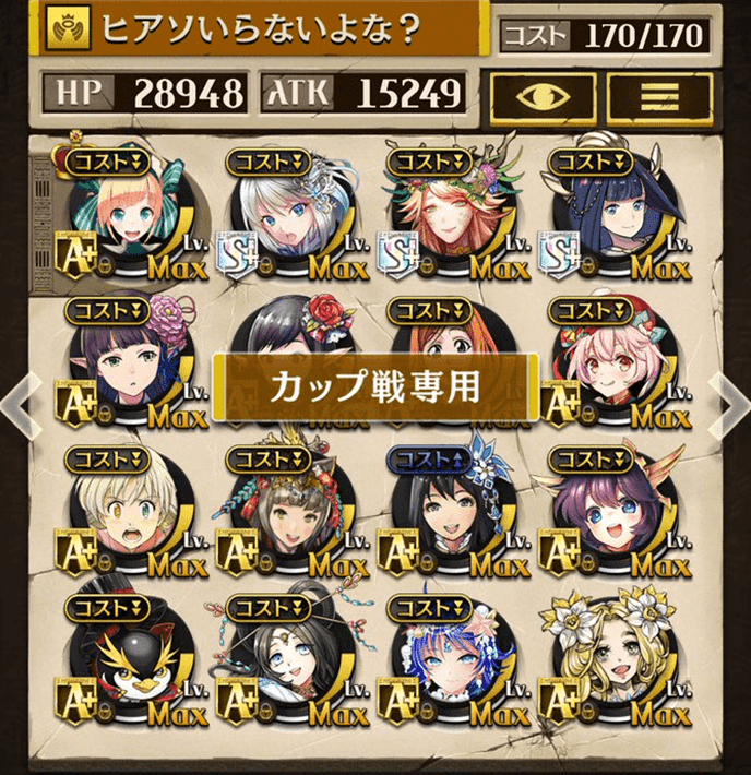 神単でそこそこなデッキが組めたので神単で挑みましたが、計算ができずプレミ多しでした。神アズのとこはヴィクトリアと半々で使いましたがアズのが使いやすい反面、コンボもatk依存のためガブ囁きに弱くなった印象でした。