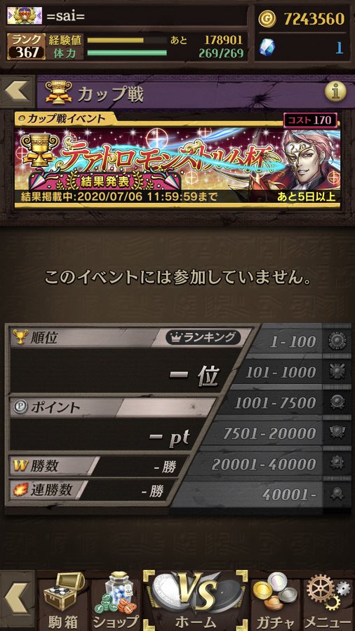 今回は20勝撤退で終わらせましたが、なかなかにきつかった…。ヴィナ代償が強すぎるカップ戦でした。