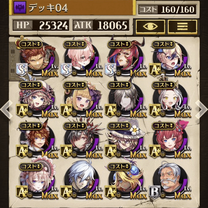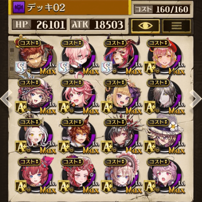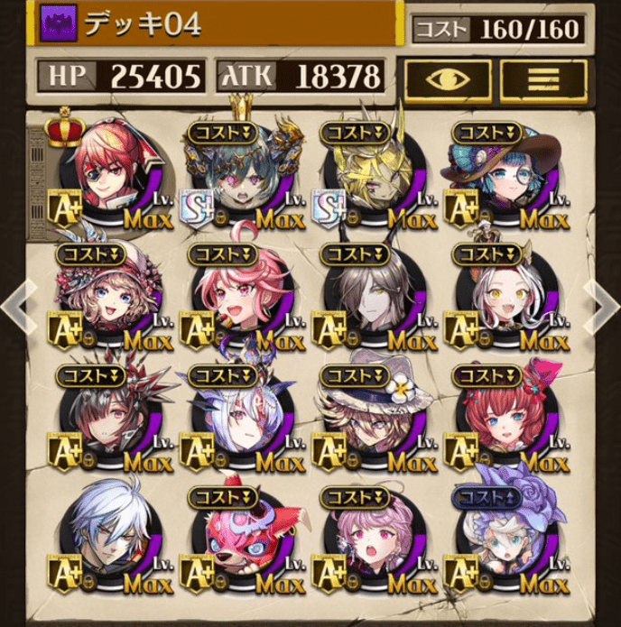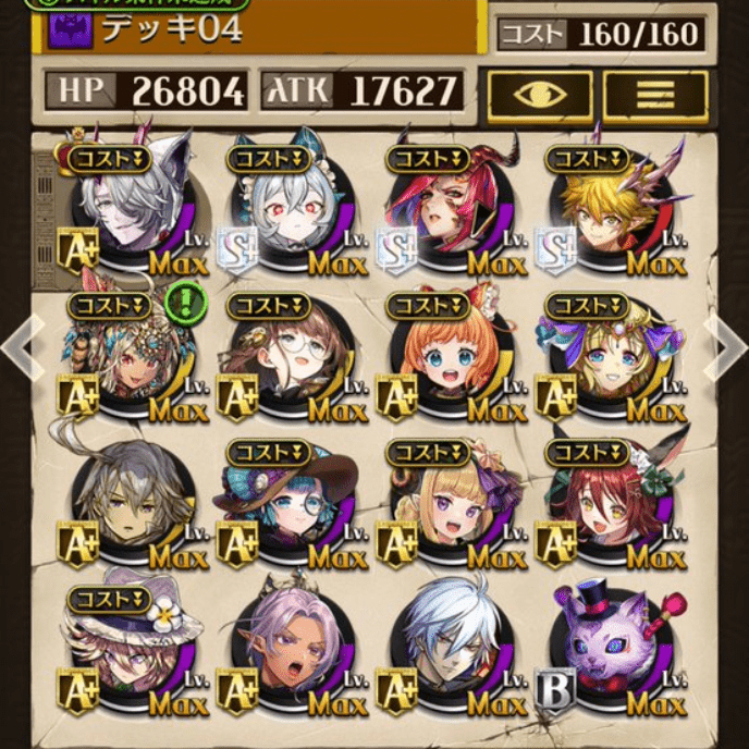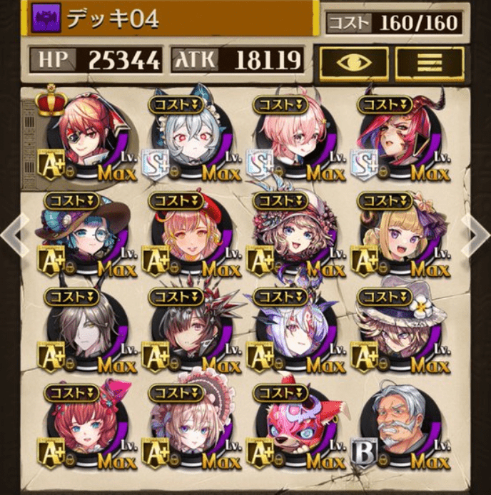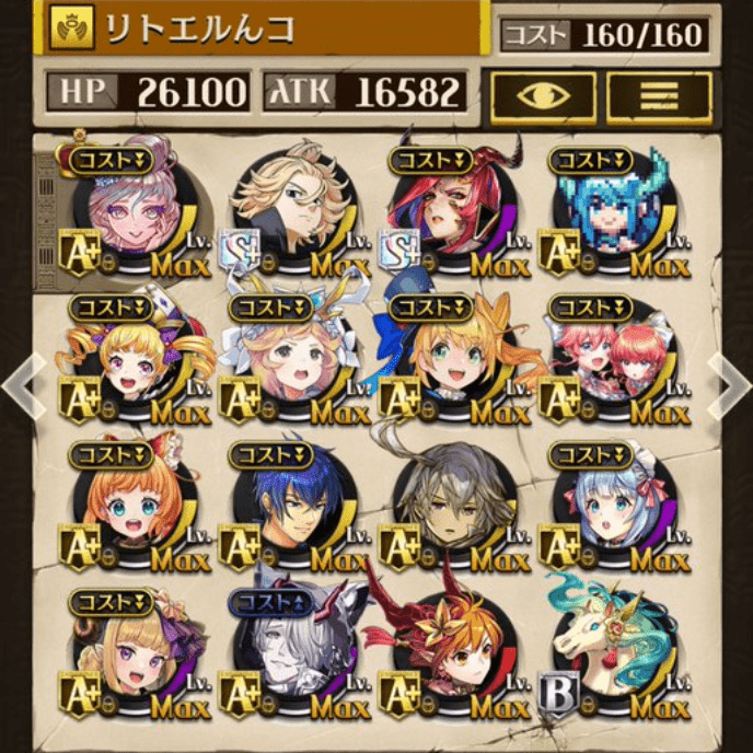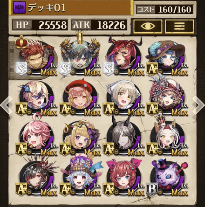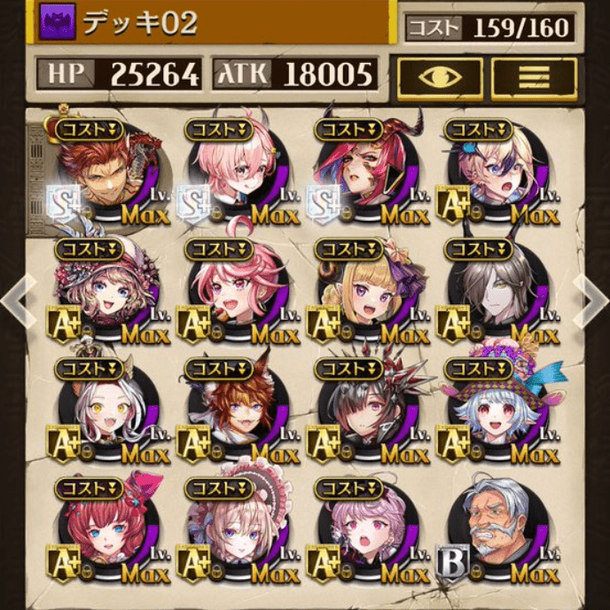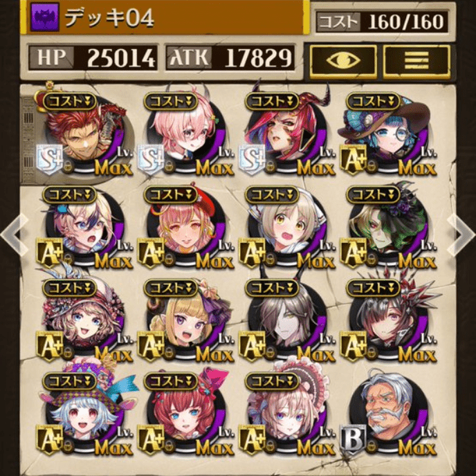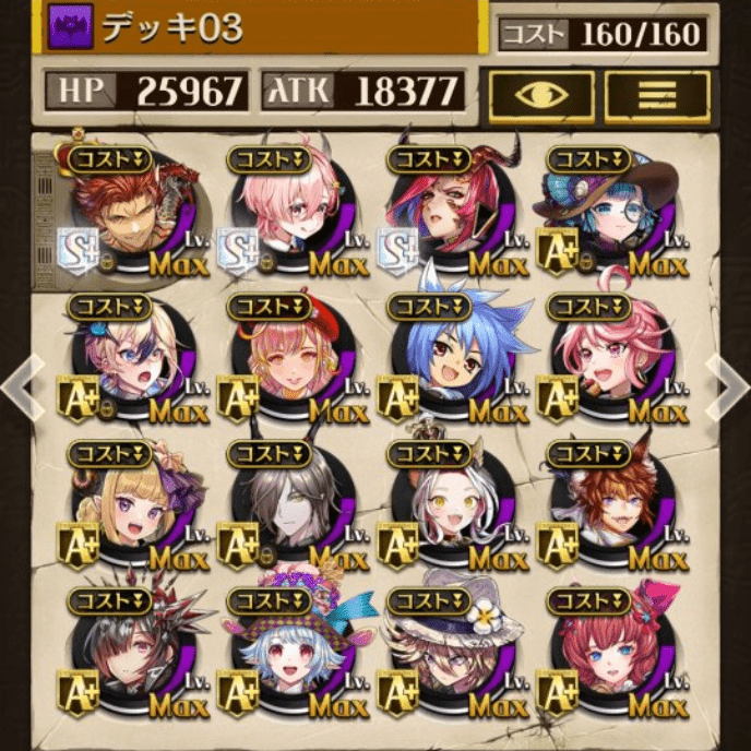 デッキ構築のコンセプトとしては、 強力なs3体は確定で、強いa駒のコスト8のキャラを持っていなかったので、コスト10のエンデガとファビオ、銀士郎を入れました。そうなると、b駒2体になりまずいので、前のカップ戦駒入れてHP底上げしました。手駒は割と出しやすい駒が多かったので、そこまで駒は腐らなかった印象です。真面目な文章なんですけど参考になれば嬉しいです。