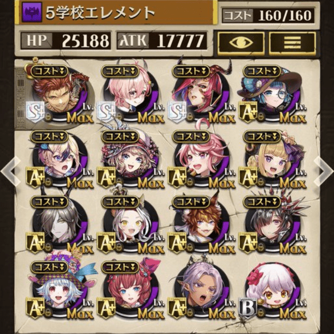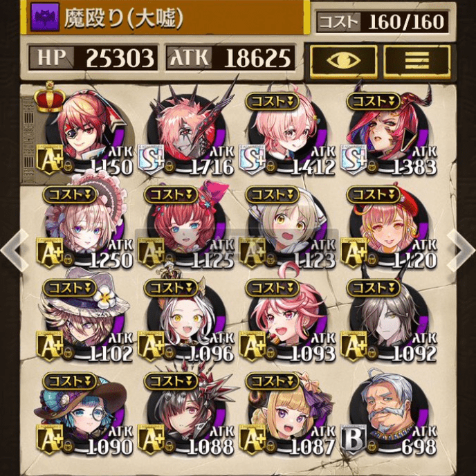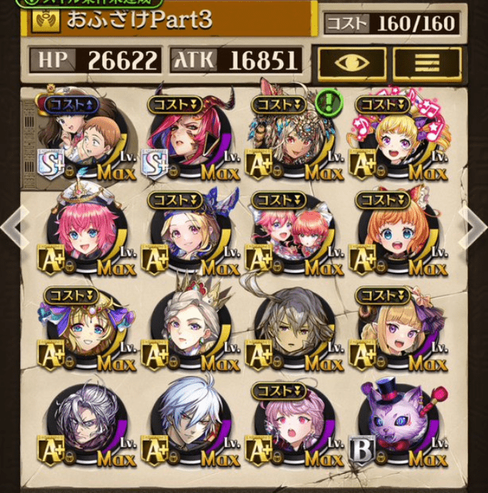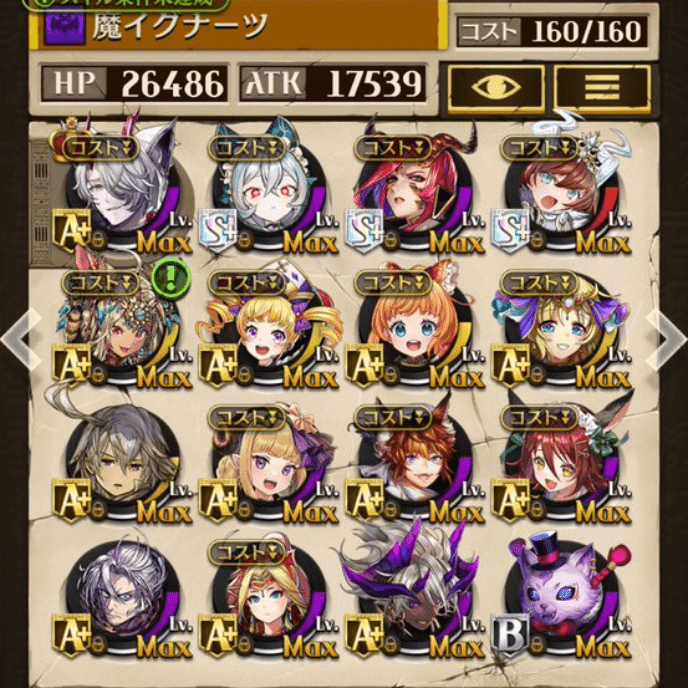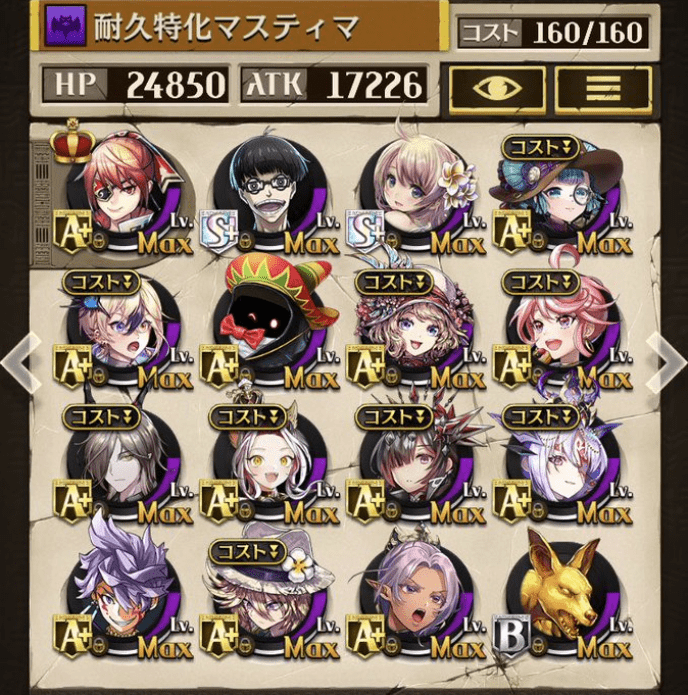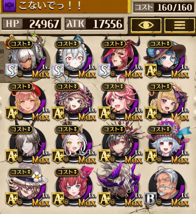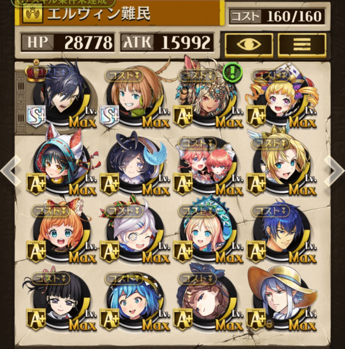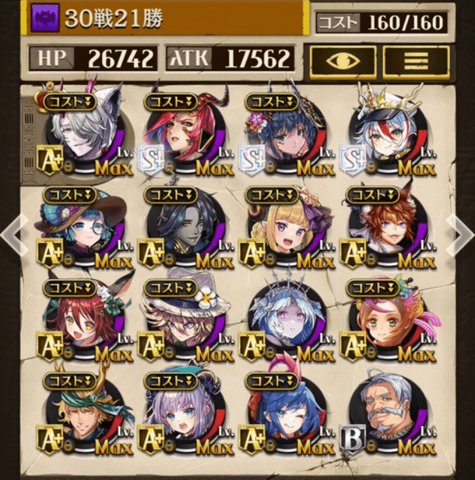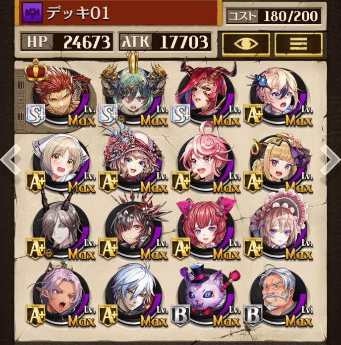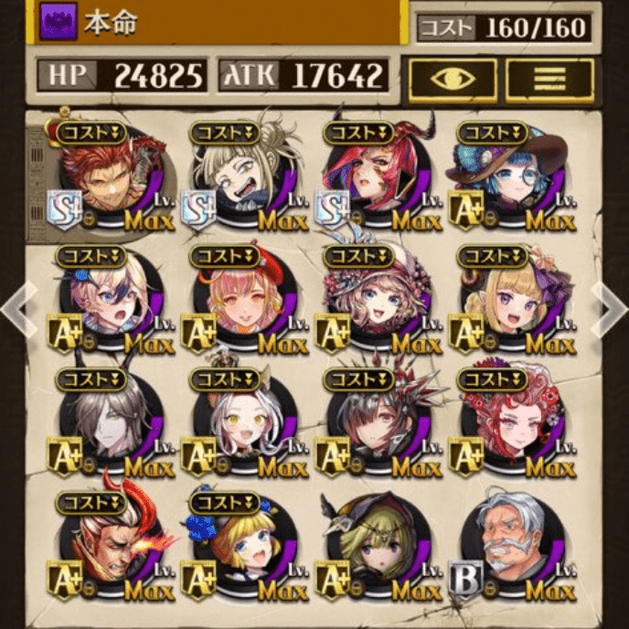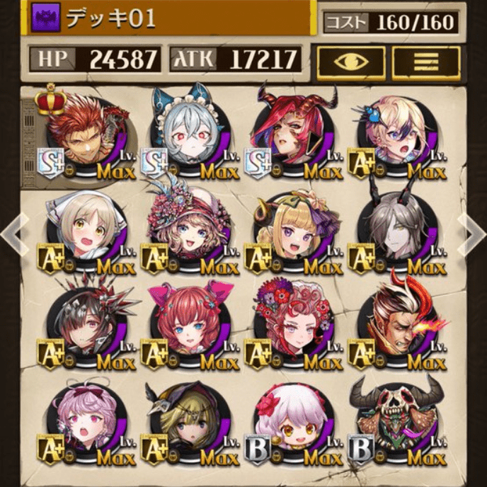 デッキ構築のコンセプトとしては、 強力なs3体は確定で、強いa駒のコスト8のキャラを持っていなかったので、コスト10のエンデガとファビオ、銀士郎を入れました。そうなると、b駒2体になりまずいので、前のカップ戦駒入れてHP底上げしました。手駒は割と出しやすい駒が多かったので、そこまで駒は腐らなかった印象です。真面目な文章なんですけど参考になれば嬉しいです。