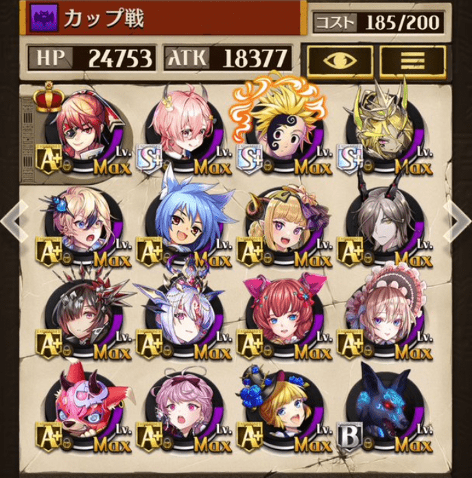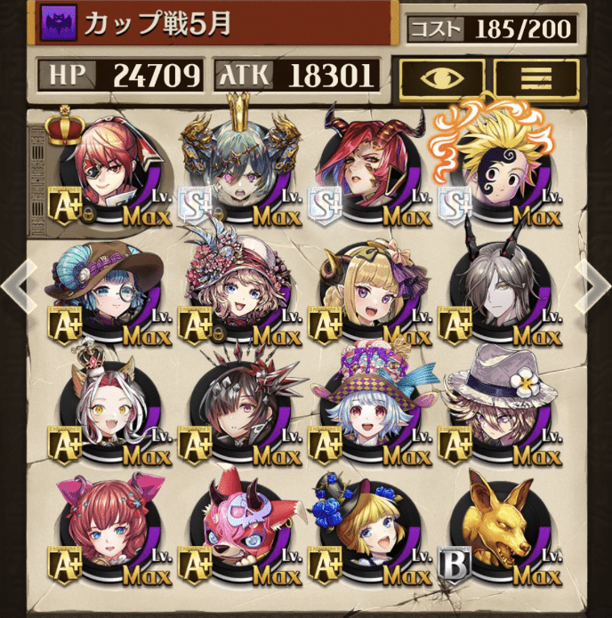 HP20~30残す試合が3戦あってA駒のATKまで+を振る重要性を感じたカップ戦でした😃
