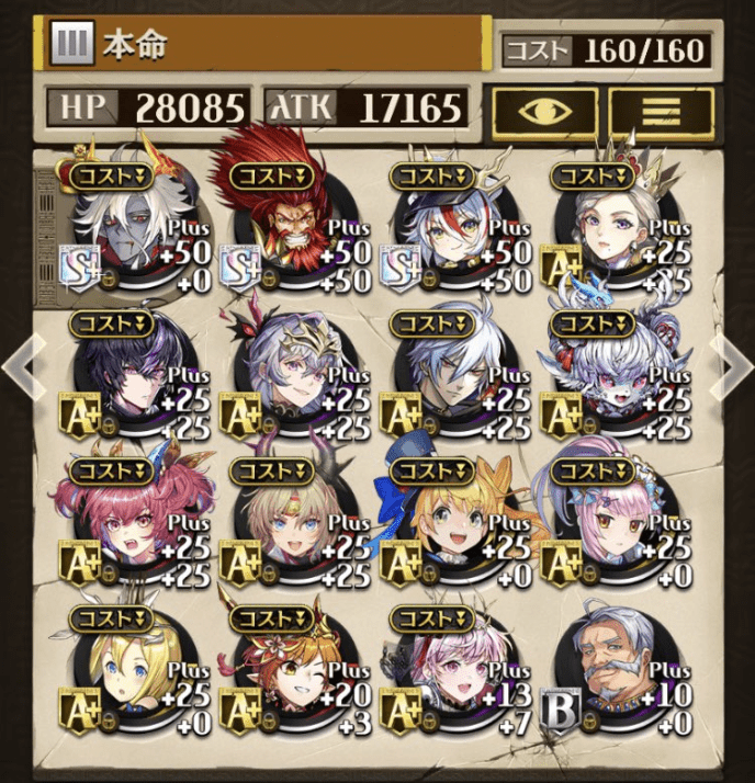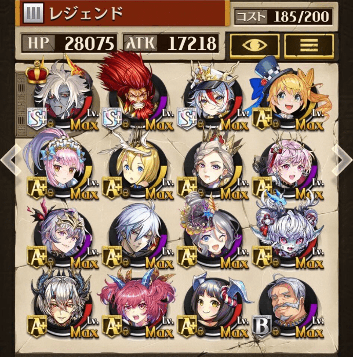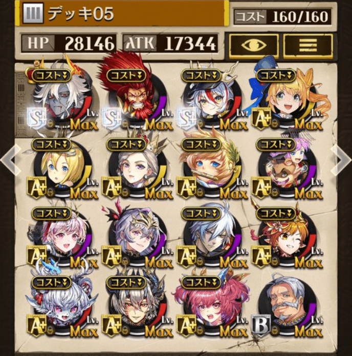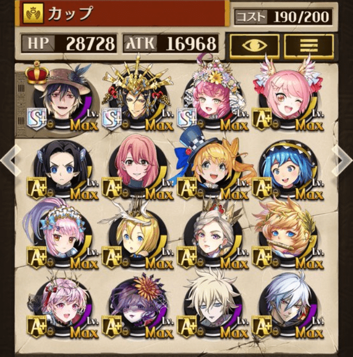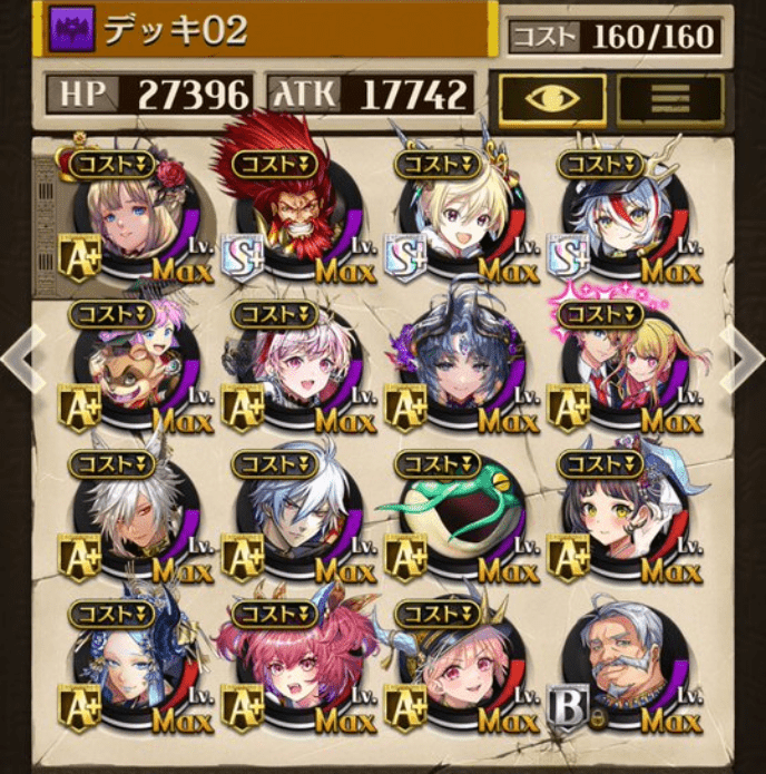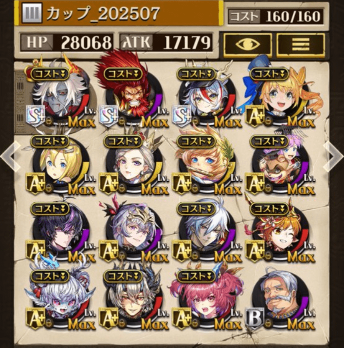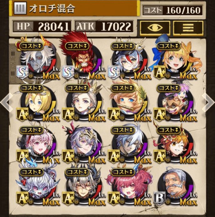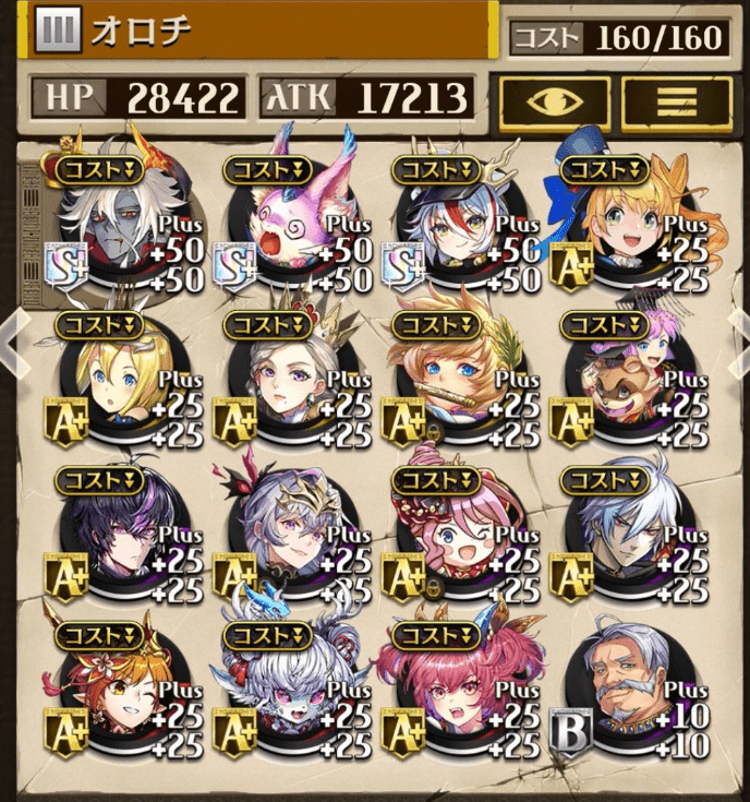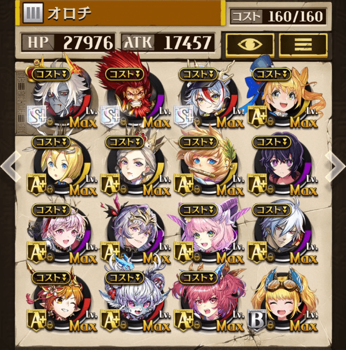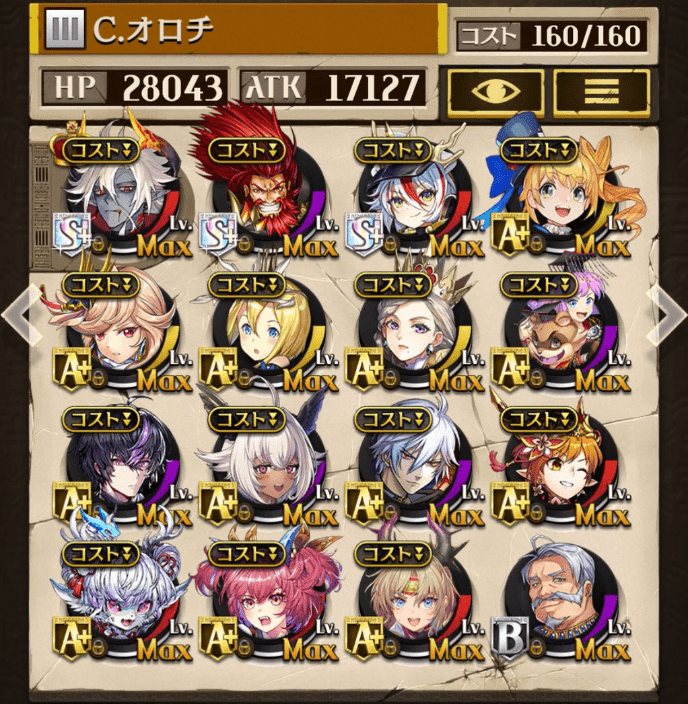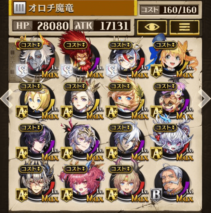 直前までメフィストとライアハートと悩んでましたが、HPの差でオロチに。ガープをルルディオにして無理やり入れた周年ヴァイセが活躍しました