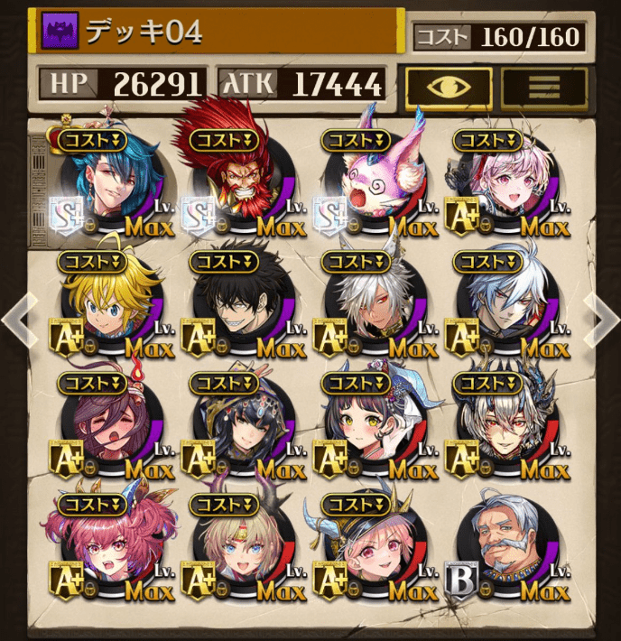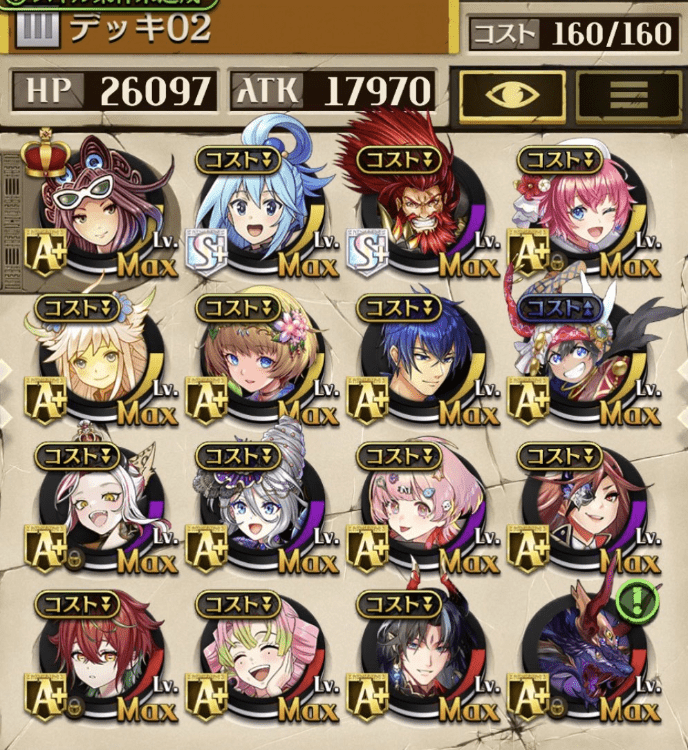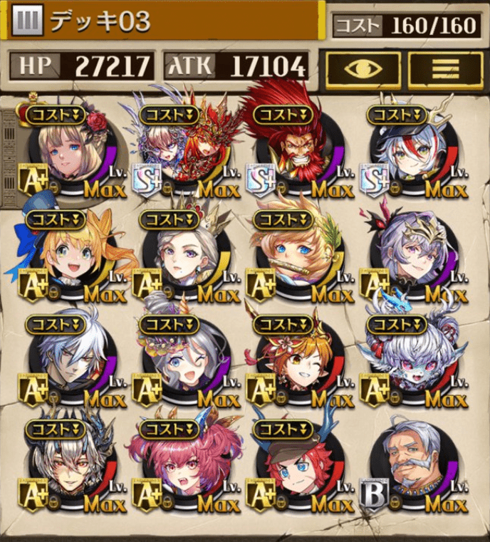 S2で組んだ方が一番HPが高くて安定していました。S駒の選択肢が少ないのでS3でデッキ組むのが難しかったです。