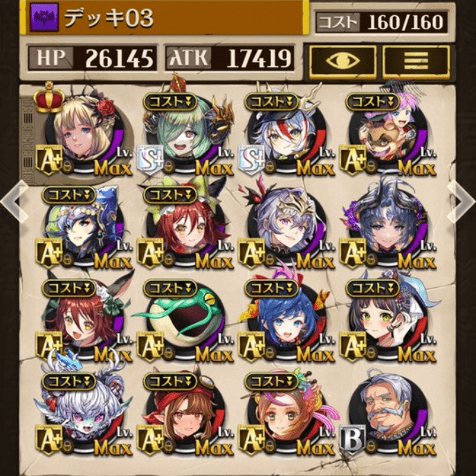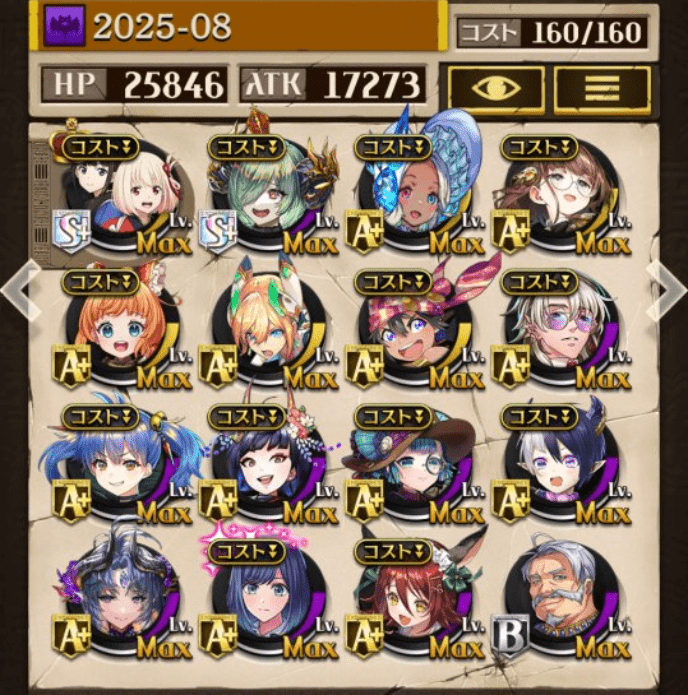 全体的に火力ある竜神かつS駒2枚積めるトリスカ採用しました! リーサルずらしできるイシュタル、火力のちさとがとても強かった!