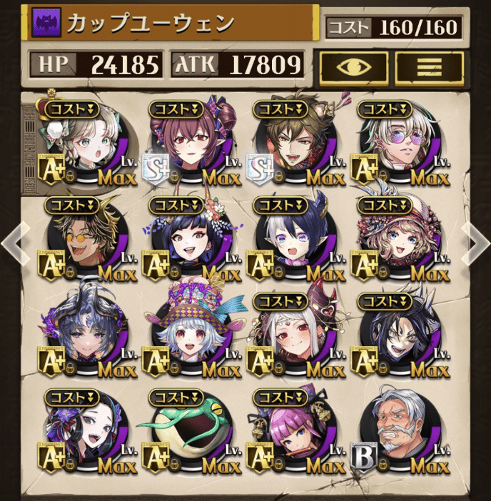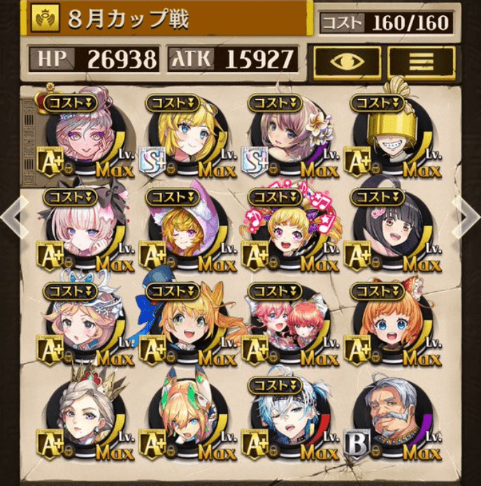 2ヶ月連続青とはならず😭 最初の方はガープを入れたライアハートでやっていたが、中盤からはガープを駒交換で手に入れたサマーロスカにした。 MVPはロロアーナと先月頑張って手に入れたちかぜ。この2駒の回復がありがたかった👍