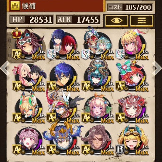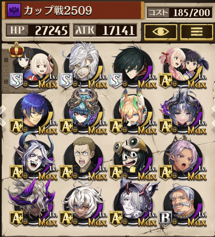 虹夏救えませんでした。5戦残しで撤退。刺さってない時の火力不足感が否めなかったです。英傑いないのやっぱ辛いなぁ