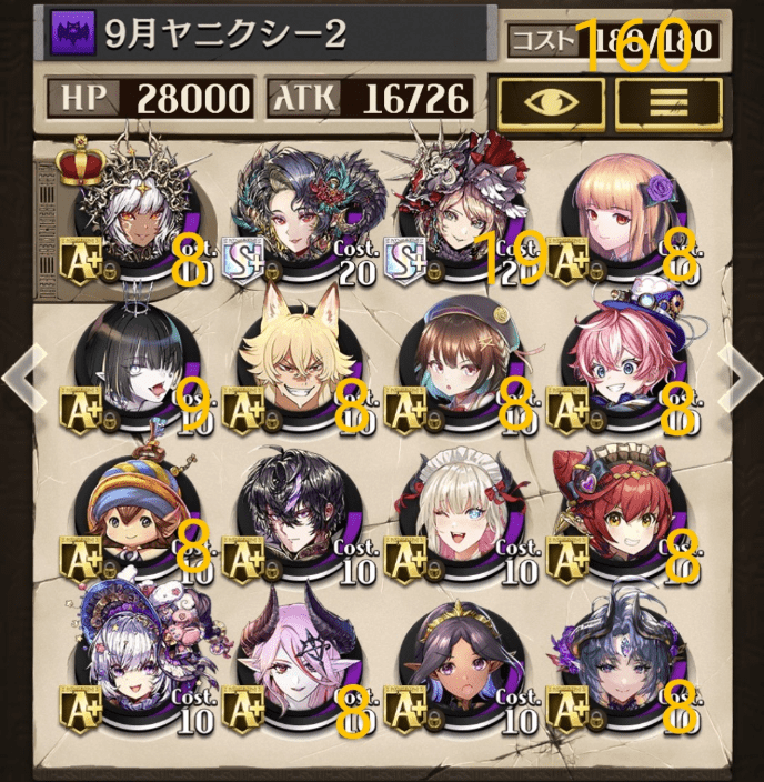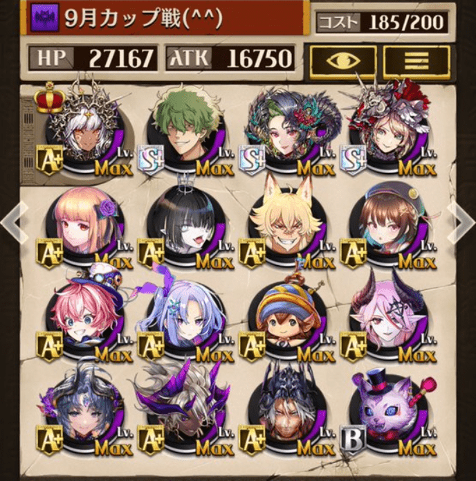 9月期カップ戦の最終結果はこちらです 完成度良かったのに変なミスが多くて落とした試合が多かった気がします。 コスト9に入れたい駒が少ないのがキツくて、フィニッシュに困ることが多かったです。 メフィストじゃなくてヒカキソにして大正解でした
