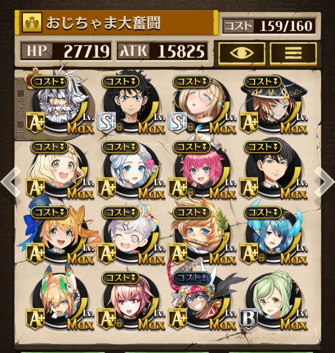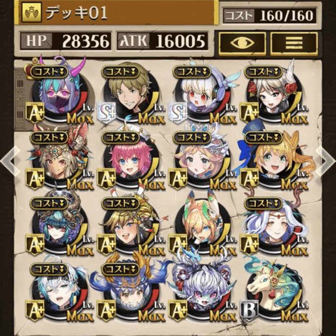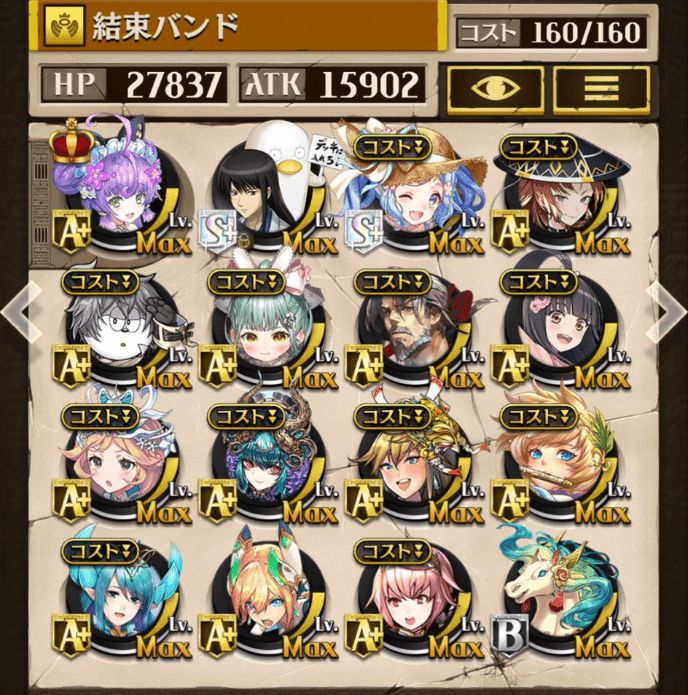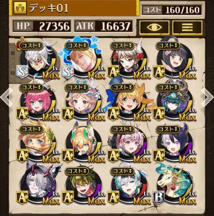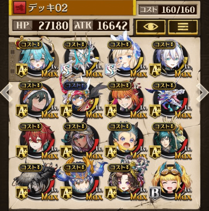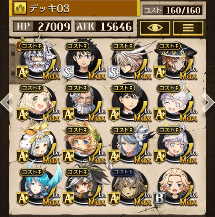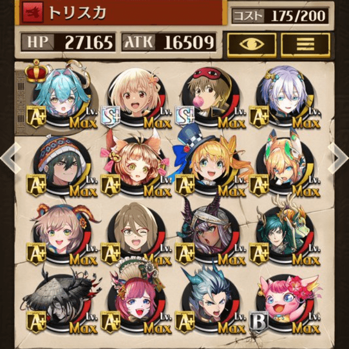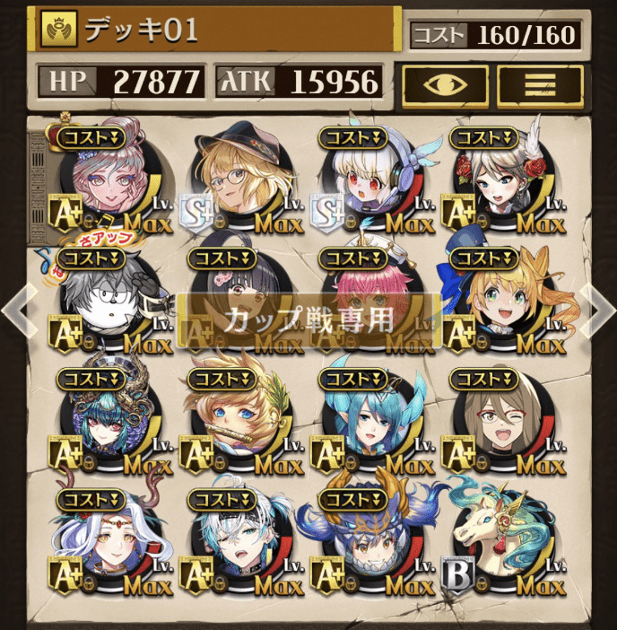 サブオーラを採用しない代わりにバフ駒を多めにしました。滑り込みでゲットしたパメラが強かった!今でも変わらず強いジークと、東リベコラボ3人に感謝です😌💕