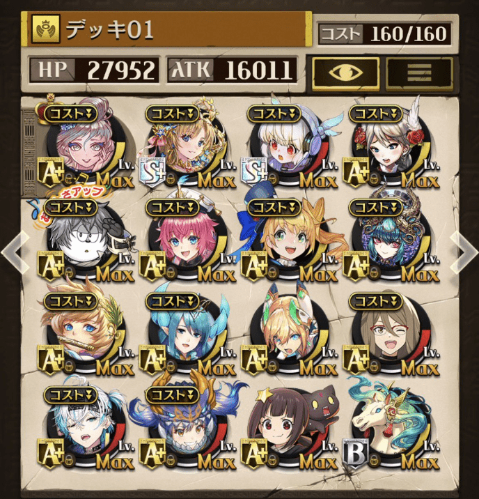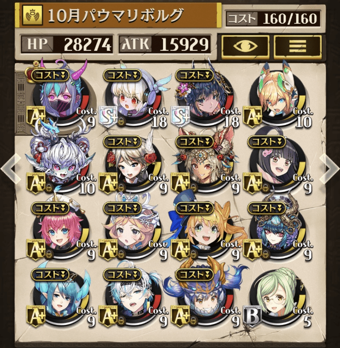 ハロウィンメイレンは今後もちょこちょこお世話になりそうな気がしてます 火力とステータスだけなら元超駒級なのでね、結構有用でしたよ、えぇ リーフェル(美樹さやか枠)はね……たまーに役立ったけど、基本発動条件のせいで空打ちしっぱなしだったから変えてよかったかも…(続)