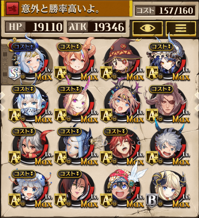 リラの神単で20勝撤退。案外この神単でも勝てたので良かったです。MVPはやはり異世界アラジン!!