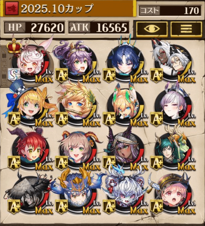 前半はリラ天楔、後半はパウーム使ってました それぞれ日常ティターニアと周年ヴィーナスには何度も命を救われました、ありがとう(ㅅ´꒳` ) いつか40勝の壁は越えたい!!!