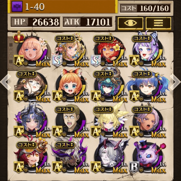 時間配分失敗して2戦残しての結果😅 どうにも上手くいかず、勝てなくて苦戦の連続だった(;-;) でも、これが実力と思って、もっと上手くなれるよう頑張りたい‼️ パウームは後半1番目の編成へ変更☺️ リトエルは3戦だけ使用したよ•ᴗ•ꕤ*