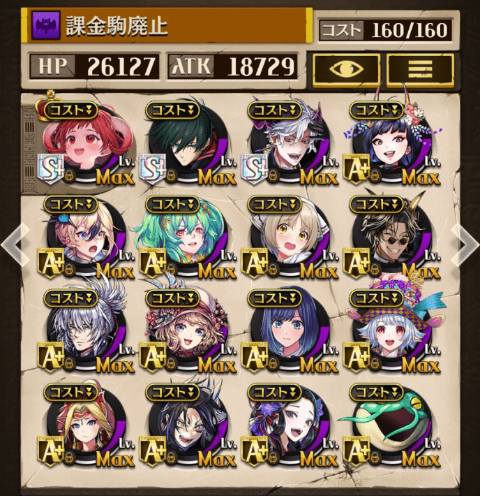 えっとですね、、最初は天羽々斬とかリトエル神単にしようと思ってたんですけど、なんか微妙でして、 ……で、勝率欲しさに閃撃に魂売りました、ごめんなさい ……課金枠(一条、蒼仁郎)筆頭に、コンボが強ぇのなんの……