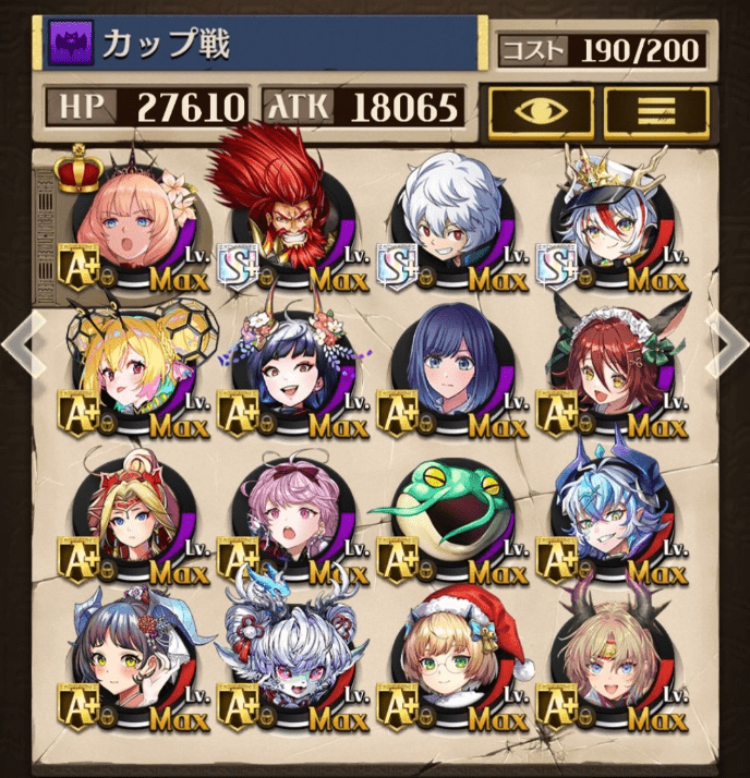 オロチでいこうとしてたところ2日前にナガルナ出たのでルシファー入替えて挑んだ ゴリ押されてからのプネーのヒールがズルく、風柱強かった🍃 たまに刺さるどくどく🐉🟣 自己ベスト更新の2回目🟦🙂↕️