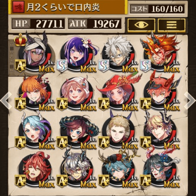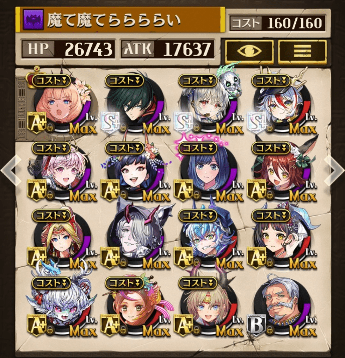 序盤10戦はタローマティでやってましたがHP差が出た時に逆転しづらくなって閃撃に変えました。 途中9連勝がありましたが、後半に先にS打たれて反撃出来ないまま負ける回数が増えたので、やっぱりオルプネー入れとけば良かったのかなと思います🤔