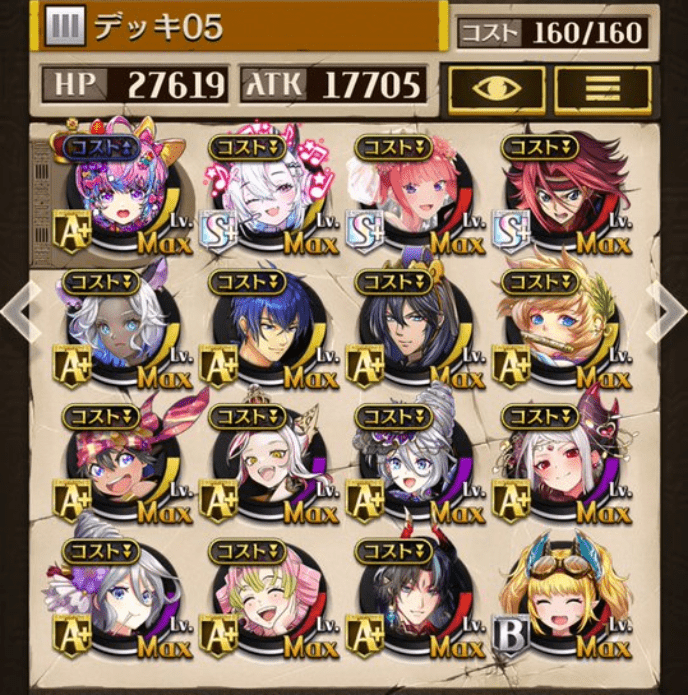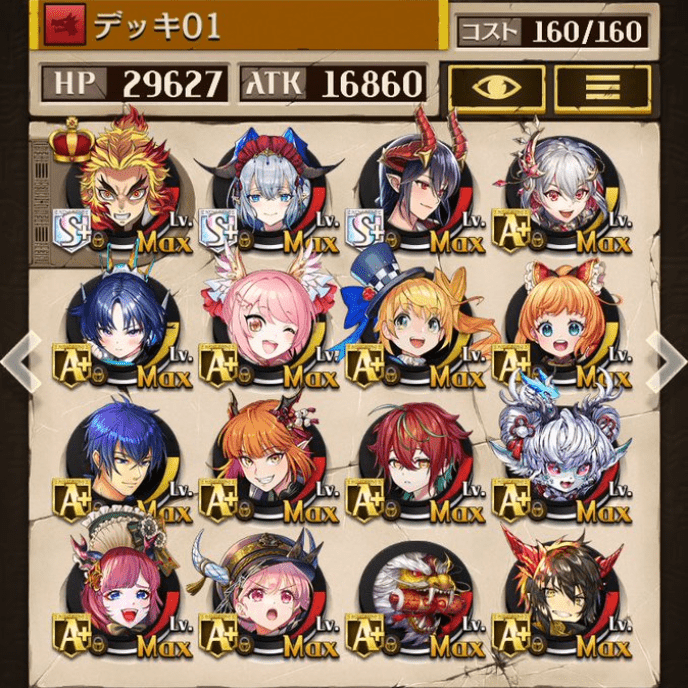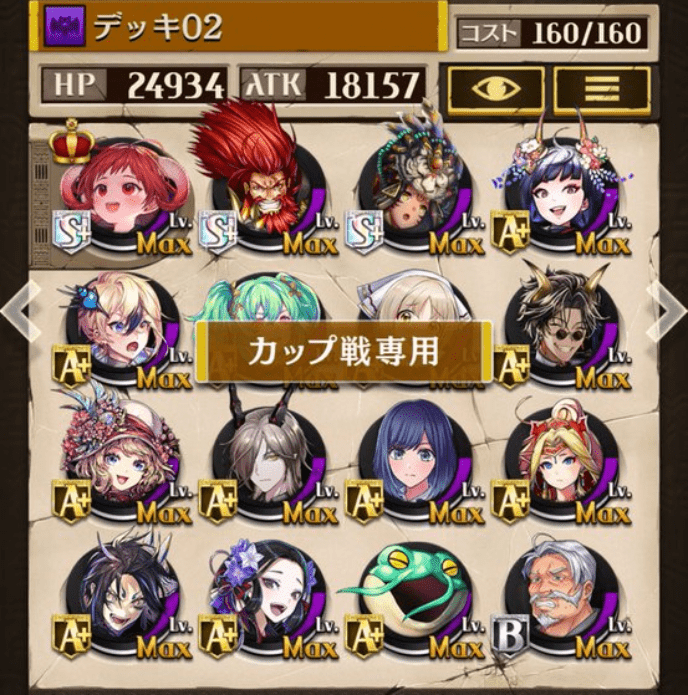 色んな方と練習し、ある程度固まったところで本戦にぶつけました。 花鳥風月にはある程度勝てますが、逆を言えば不死川をコン確に置かれたらほぼ負けです。 使い方は回復して延命しつつ殴る時は殴るというシンプルなデッキです。 あとB0でS3組めるの最高です。