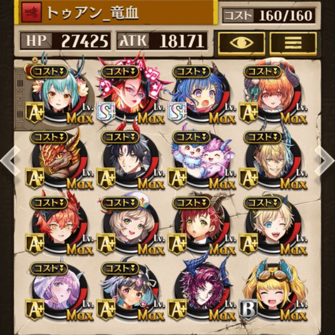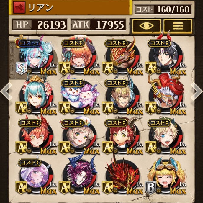 福岡宴でリアンツィールが強いという噂を聞き🫣 最終戦だけb1にしてみたけどそっちのほうが強そうだったなああ