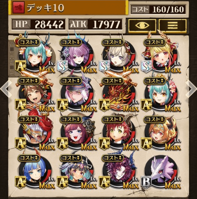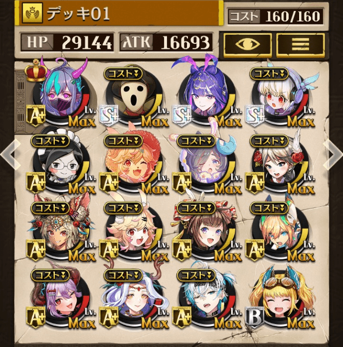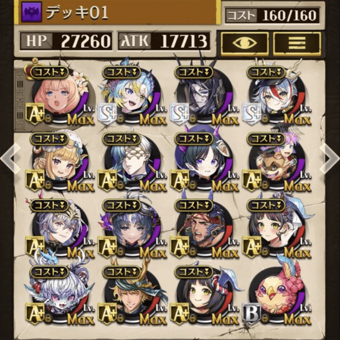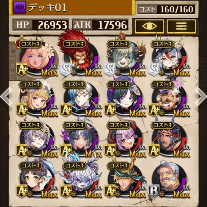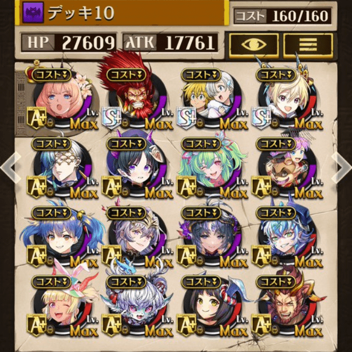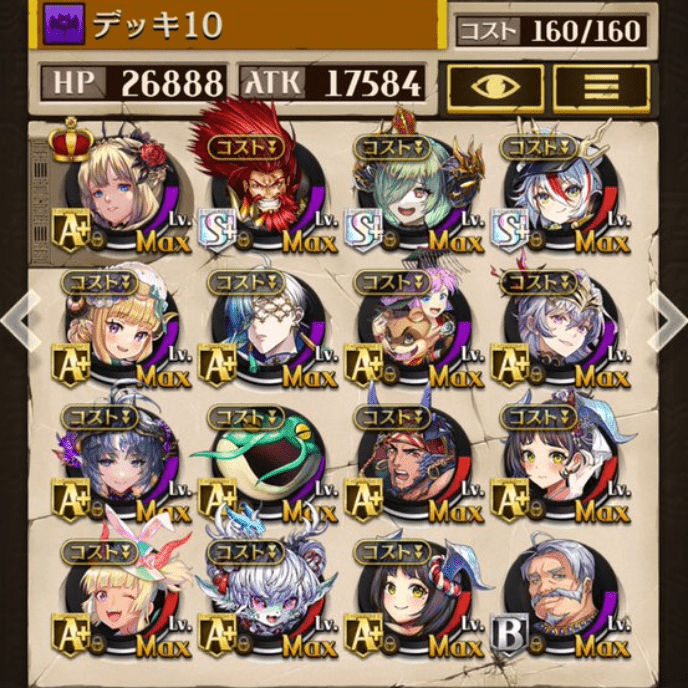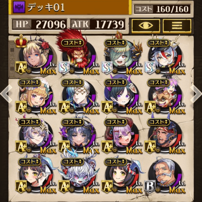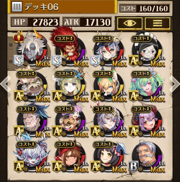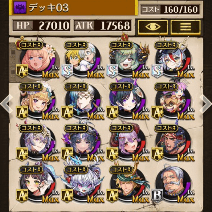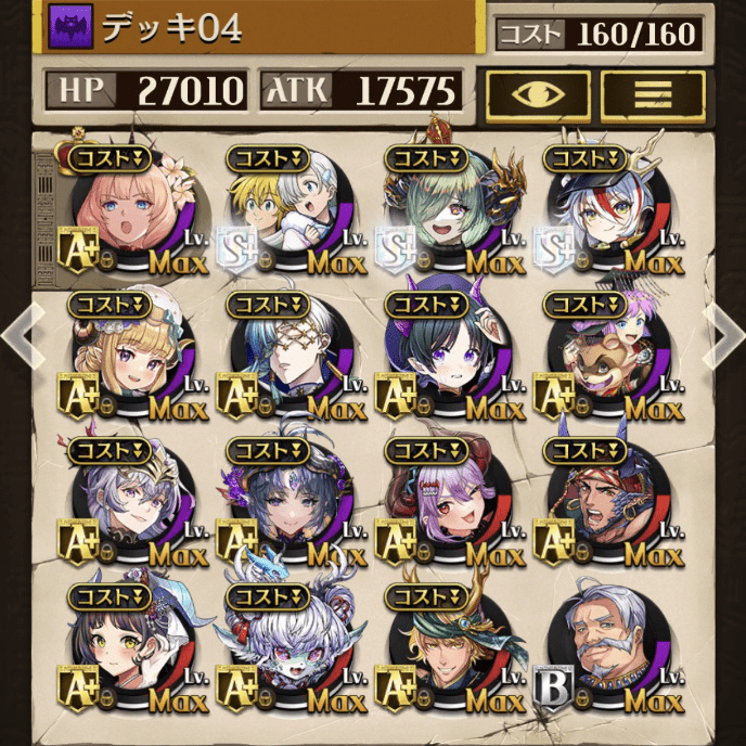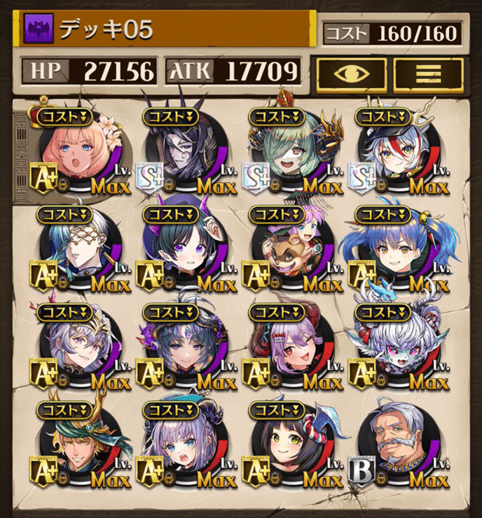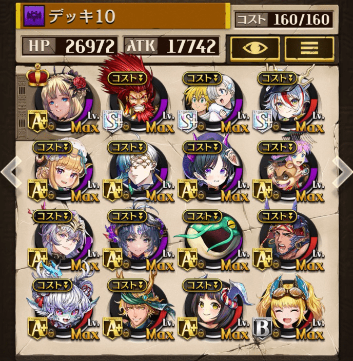 デッキに入れるS駒に悩んだが、環境的に早いターンにスキルとコンボダメージ出せる&1ターン完結の駒を選びました。 パウームはいい加減に固定コスト11か12にして欲しい。
