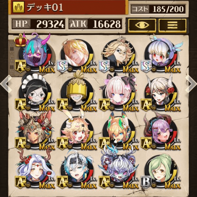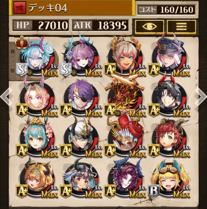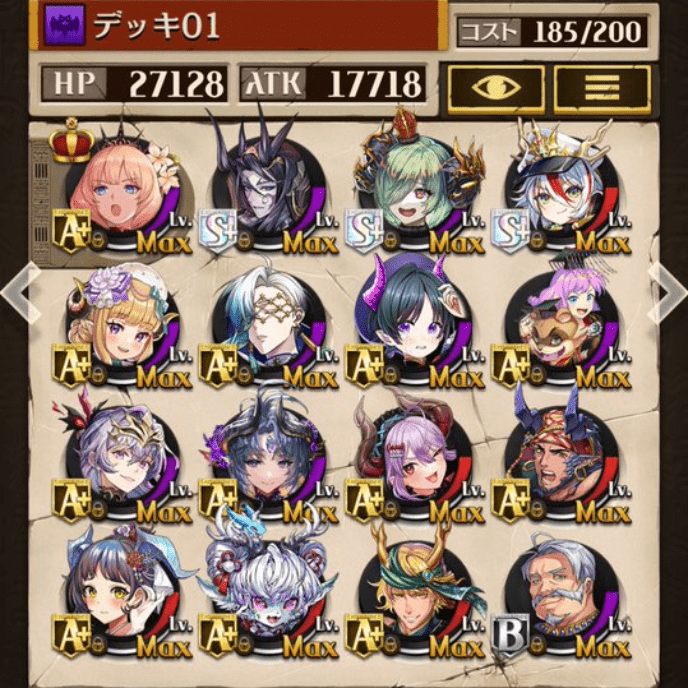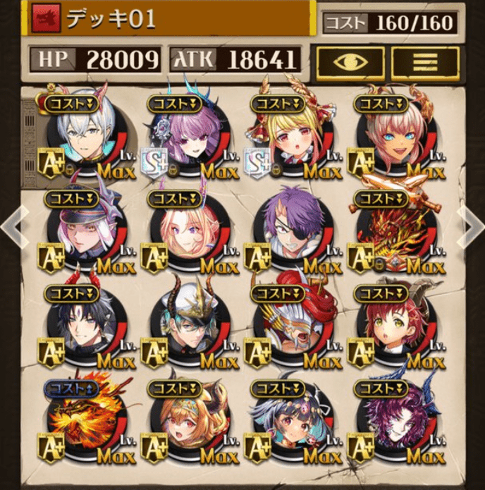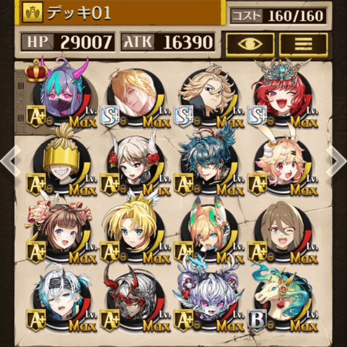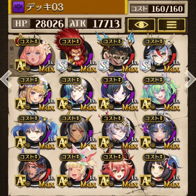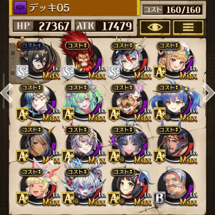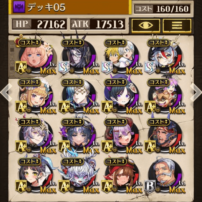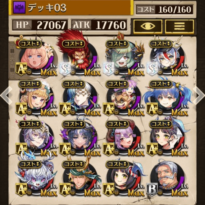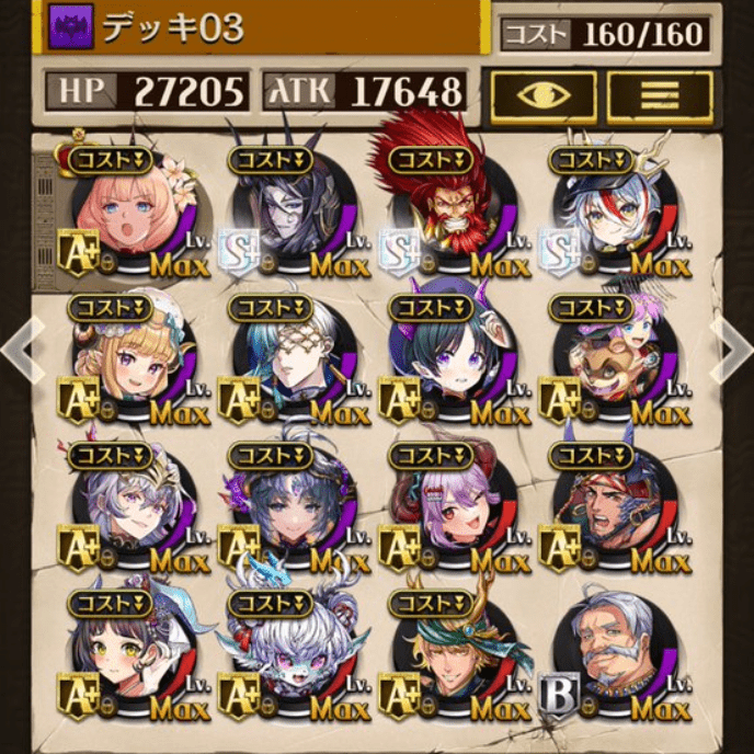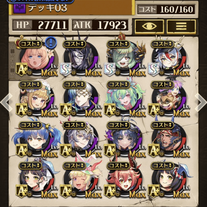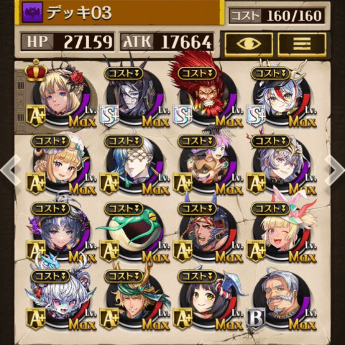 デッキに入れるS駒に悩んだが、環境的に早いターンにスキルとコンボダメージ出せる&1ターン完結の駒を選びました。 パウームはいい加減に固定コスト11か12にして欲しい。