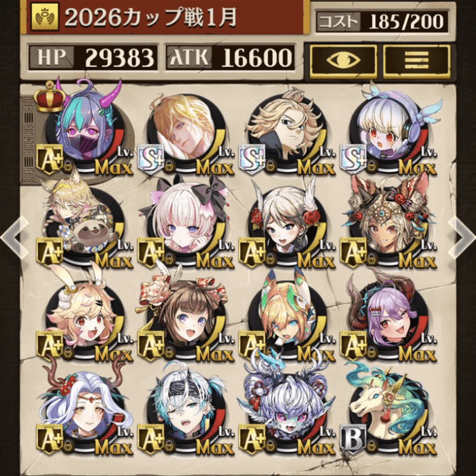 フィニッシャーと回復のバランスが取れてて使いやすかったです。 時勝とアリシャールが思ってた3倍強かったです。一旦順位更新に感謝🙏