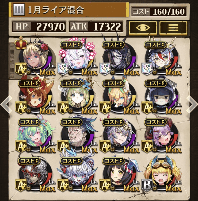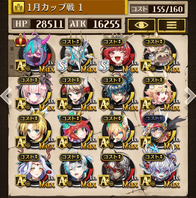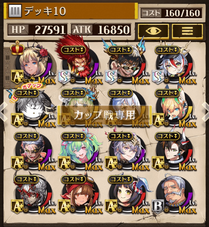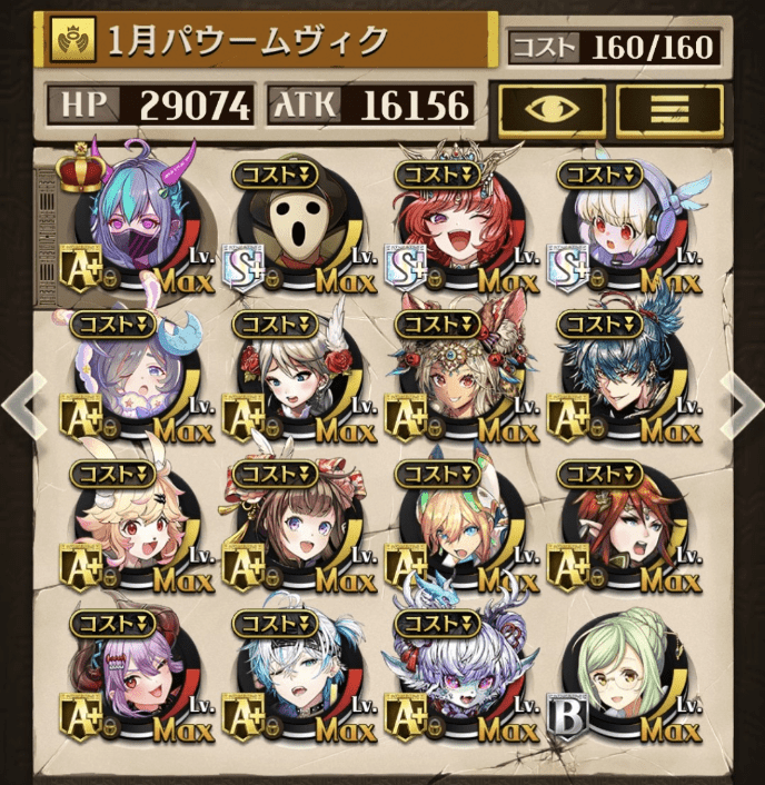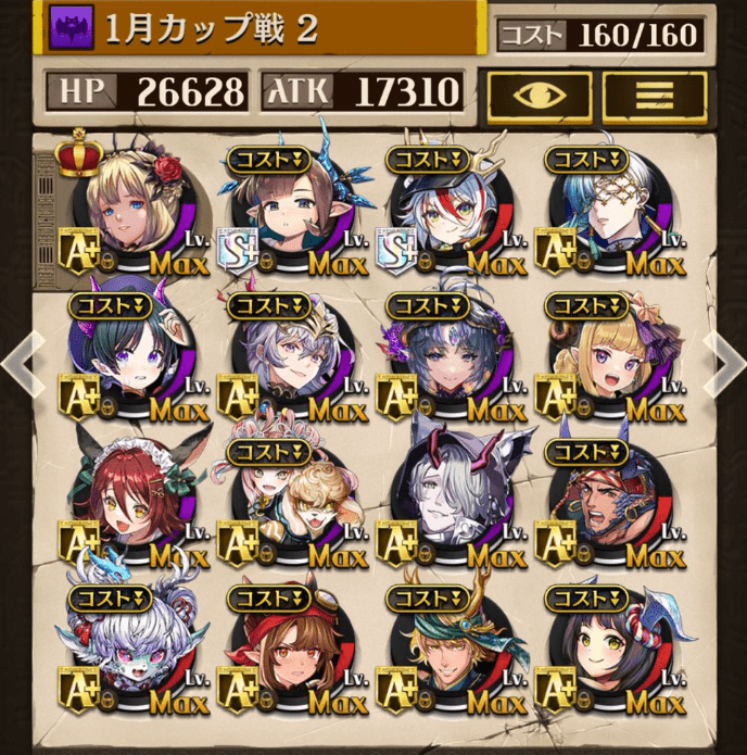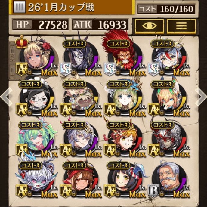 10戦10連勝の全勝で終われて満足!!! HP3万超えたから火力出せる駒を多めに採用してごり押し出来る構築に😊 ps.季節駒無料チケットでイケメンヒュプ引けて早速活躍してくれるの神すぎたwwww